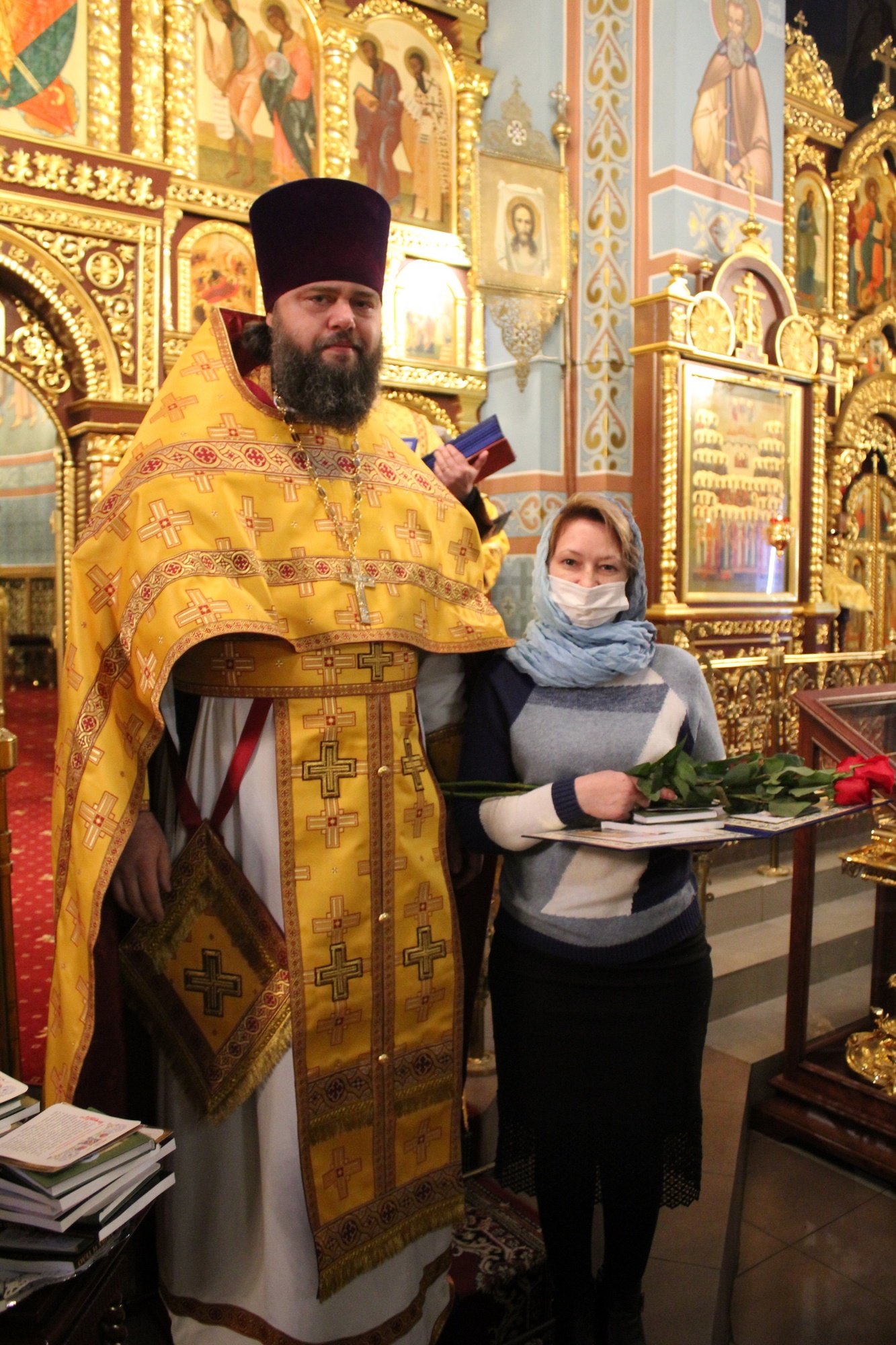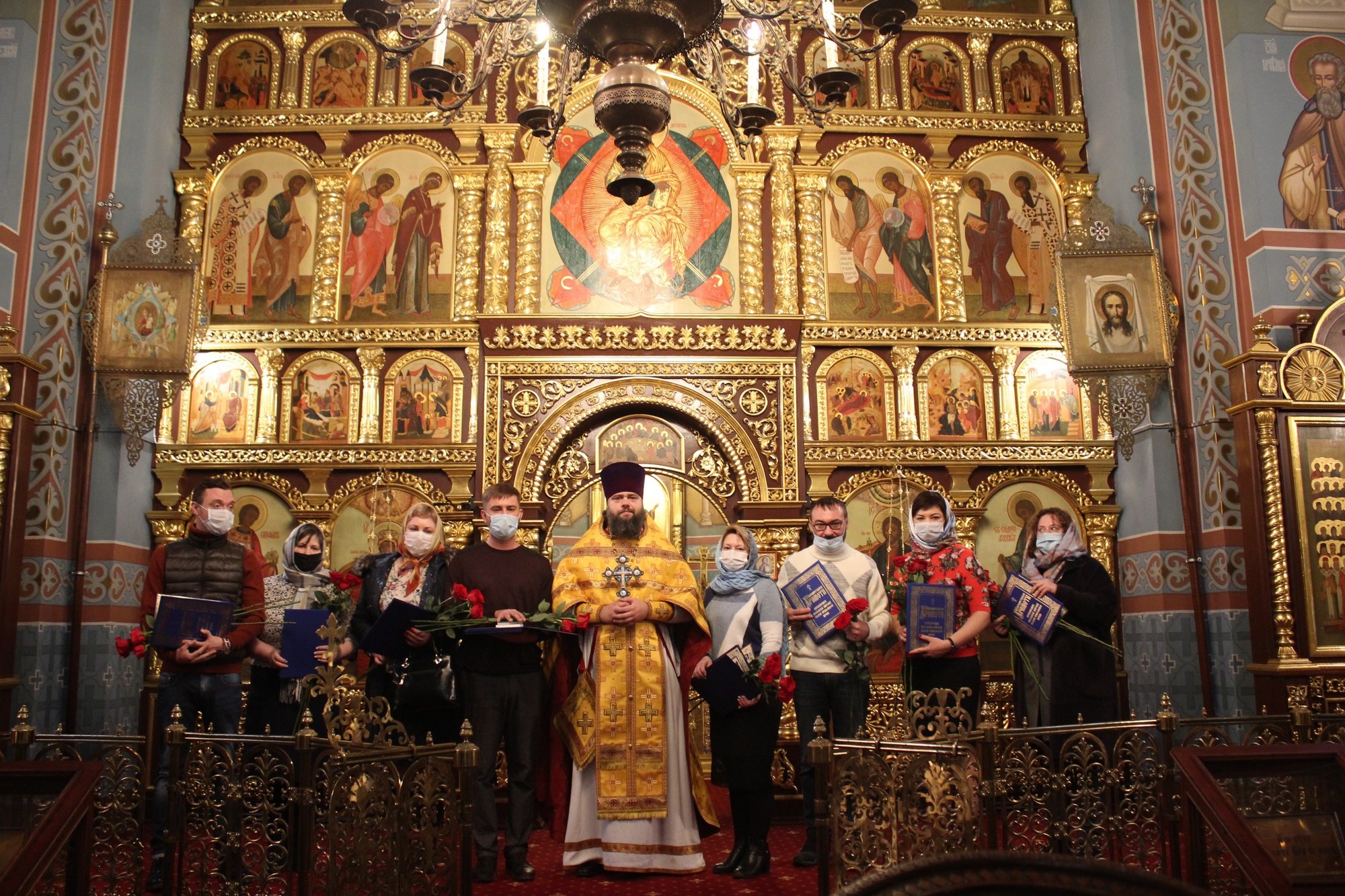 29 ноября в соборе Всех святых, в земле Русской просиявших г. Домодедово благочинный Домодедовского церковного округа священник Андрей Дьячков вручил епархиальные награды врачам медицинских учреждений городского округа Домодедово, несущим попечение о заболевших коронавирусной инфекцией. Отец благочинный передал награжденным благословение и сердечную благодарность митрополита Ювеналия.