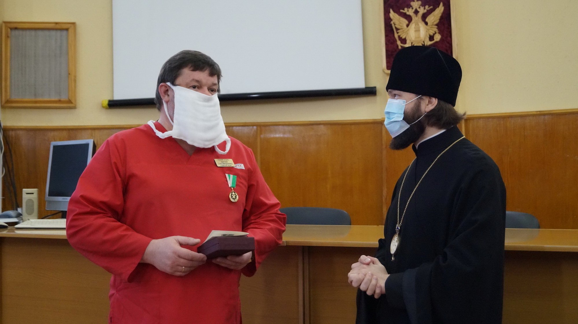 4 декабря благочинный церквей города Коломны и Коломенского округа епископ Луховицкий Петр посетил Коломенскую центральную районную больницу, где вручил церковные награды медицинским работникам, несущим попечение о заболевших коронавирусной инфекцией. Главный врач О. В. Митин был удостоен медали Русской Православной Церкви «Патриаршая благодарность».