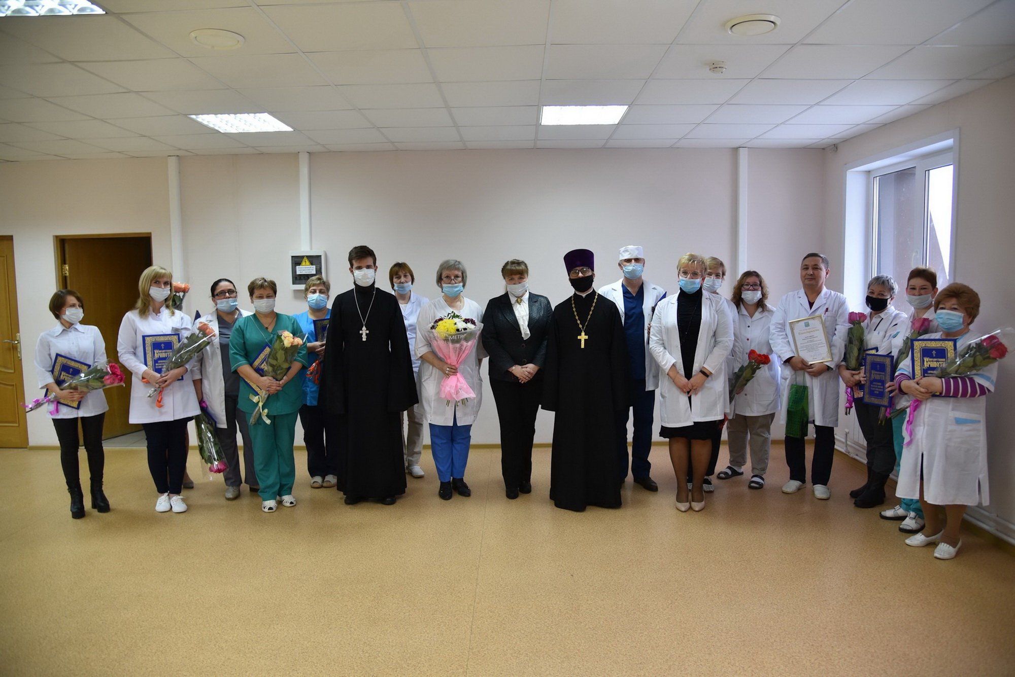 4 декабря в Лотошинской центральной районной больнице состоялась церемония награждения медицинских работников, несущих попечение о заболевших коронавирусной инфекцией. На мероприятии присутствовали благочинный Лотошинского церковного округа священник Алексий Кошелев, глава г.о. Лотошино Екатерина Долгасова, главный врач Лотошинской ЦРБ Вера Вдовина, ответственный по работе с медицинскими учреждениями в Лотошинском благочинии священник Михаил Митякин и сотрудники больницы. Благодарственные грамоты митрополита Ювеналия медицинским работникам вручил благочинный Лотошинского церковного округа священник Алексий Кошелев. В этот же день в Микулинской картинной галерее заслуженные награды получили сотрудники Московской областной психиатрической больницы №12, особо потрудившиеся в борьбе с коронавирусной инфекцией.