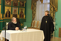 В Серафимовском храме при Александро-Невском соборе перед собравшимися выступили: благочинный церквей Егорьевского округа протоиерей Сергий Кожевников, эксперт школьного отдела комитета по образованию г.о. Егорьевск Марина Павлова, профессор Московской духовной академии Алексей Светозарский, Николай Ефремов - победитель конкурса чтецов, приуроченного к XVIII Рождественским образовательным чтениям.