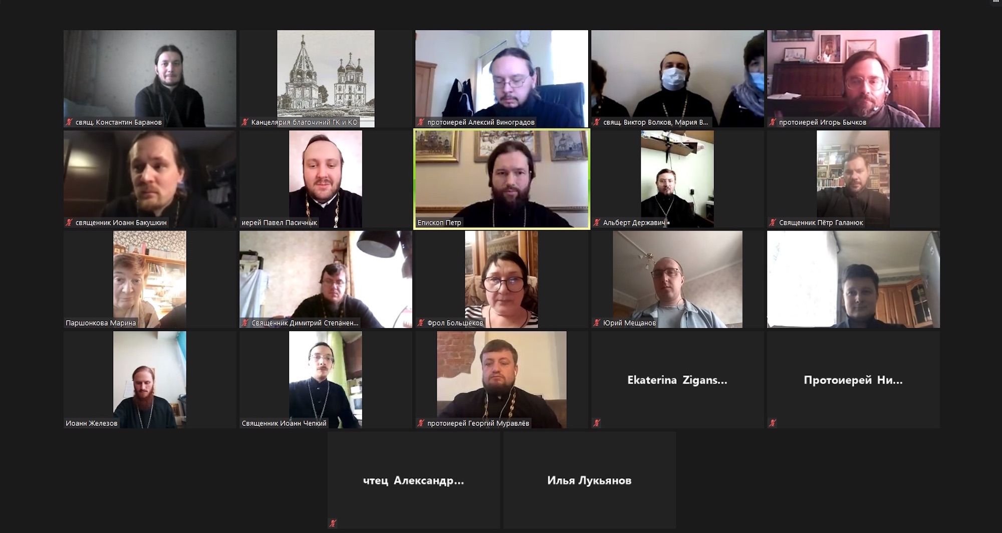 27 декабря в формате онлайн-конференции состоялось ежегодное собрание членов православного братства святого благоверного князя Димитрия Донского города Коломны. Председатель братства епископ Луховицкий Петр подвел итоги деятельности объединения в 2020 г. Собрание пополнилось девятью новыми братчиками, которыми стали протоиерей Алексий Виноградов, протоиерей Георгий Муравлев, иеромонах Иоанн (Железов), священник Константин Баранов, священник Виктор Волков, священник Александр Державич, священник Павел Пасичнык, священник Димитрий Степаненков и священник Иоанн Чепкий. В Совет братства в качестве второго товарища председателя был избран протоиерей Алексий Виноградов.