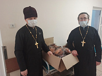 8 января игумен Феофан (Замесов) отслужил молебен в Страстном храме деревни Артемово, поздравил всех с праздником и вручил подарки каждому из нуждающихся, живущих в приходском приюте.