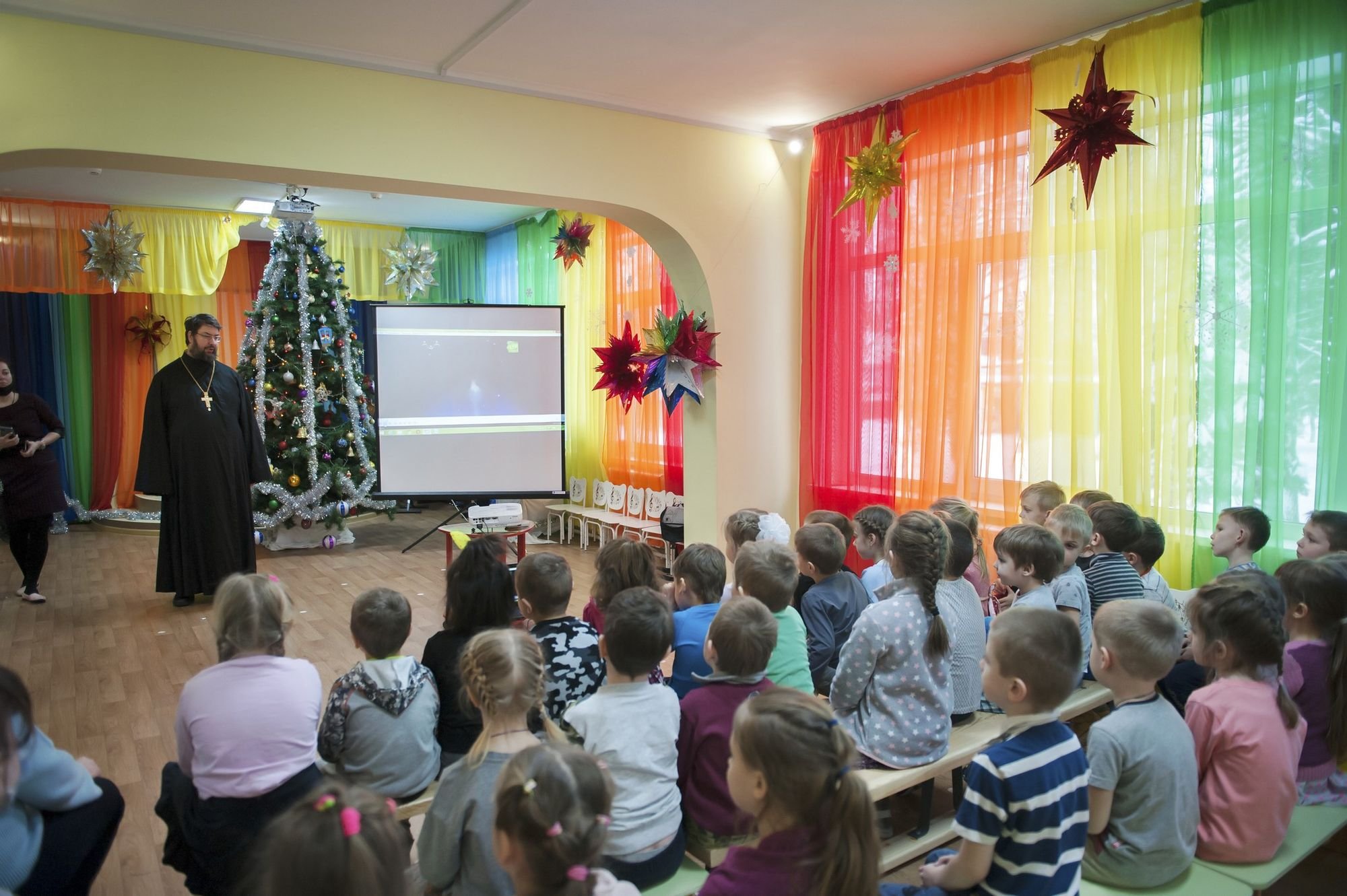 20 января настоятель Иоанно-Предтеченского храма села Садки протоиерей Александр Орлов посетил детский сад № 50 «Колосок» в городе Дедовске, где рассказал детям о празднике Рождества и Крещения.