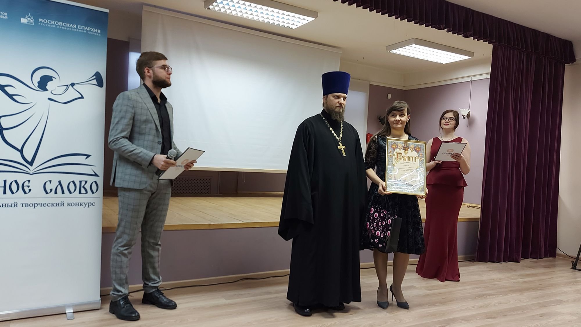 12 февраля в Дмитровском музейно-выставочном комплексе прошла торжественная церемония награждения победителей и участников IV регионального творческого конкурса «Верное слово», организаторами которого являются Московская епархия и Союз журналистов Подмосковья. В 2020 году конкурс был посвящен 75-летию Победы в Великой Отечественной войне. На конкурс было подано более двухсот работ в пяти номинациях из 19 городов Подмосковья. В этом году впервые в конкурсе «Верное слово» активное участие приняли школьники, обучающиеся основам журналистики в творческих объединениях Подольска, Сергиева-Посада, Чехова и Пушкинского района. Церемонию награждения победителей и участников конкурса возглавили сопредседатели жюри – председатель Союза журналистов Подмосковья, секретарь совета Союза журналистов России Наталья Чернышова и председатель Епархиального отдела по издательской деятельности и связям со СМИ, ответственный за взаимоотношения с обществом священник Димитрий Полещук. Победители конкурса получили грамоты, книги и денежную премию. Благословенных грамот митрополита Ювеналия были удостоены члены Союза журналистов Подмосковья Вера Кузьминых (г. Орехово-Зуево) и Любовь Лукашина (г. Сергиев-Посад). Дети получили дипломы и подарки за активное участие в конкурсе.