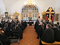 26 февраля в Троицком храме на Репне состоялось братское совещание духовенства благочиний города Коломны и Коломенского округа. Благочинный епископ Луховицкий Петр познакомил собравшихся с циркулярами митрополита Ювеналия. Были представлены новоназначенные клирики. Обсуждалось проведение III Фестиваля церковного чтения и II открытого фестиваля-конкурса духовной песни имени святителя Филарета, митрополита Московского и Коломенского.