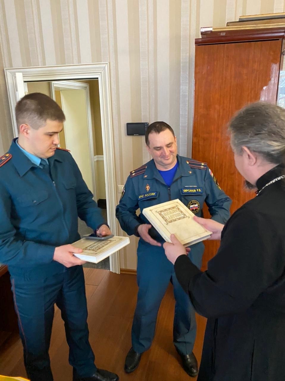 26 февраля благочинный церквей Подольского округа протоиерей Олег Сердцев провёл рабочую встречу с начальником пожарной охраны и начальником отдела надзорной деятельности по г.о. Подольск. В ходе встречи была достигнута договорённость о заключении соглашения о совместной деятельности с благочинием. В заключение встречи отец Олег подарил гостям книгу о Подольском благочинии.