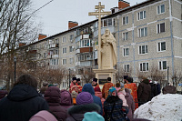 Днем на центральной площади поселка Глебово, у памятника священномученика Алексия Смирнова, собором духовенства благочиния был отслужен праздничный молебен, после чего благочинный обратился с приветственным словом к собравшимся.