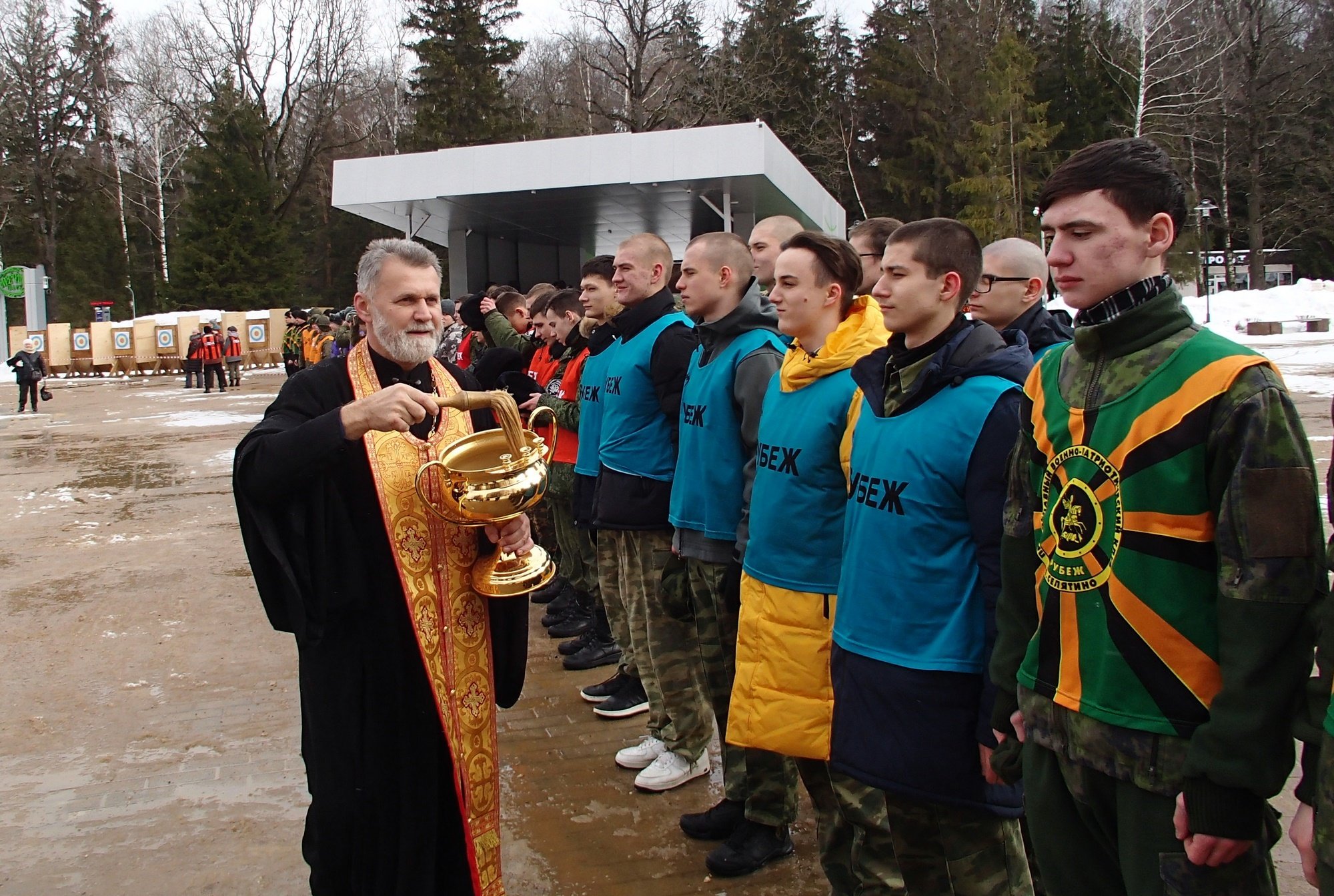 На церемонии открытия финальных состязаний среди обратившихся к участникам с приветствием был настоятель Серафимовского храма поселка Селятино протоиерей Александр Кречетов.