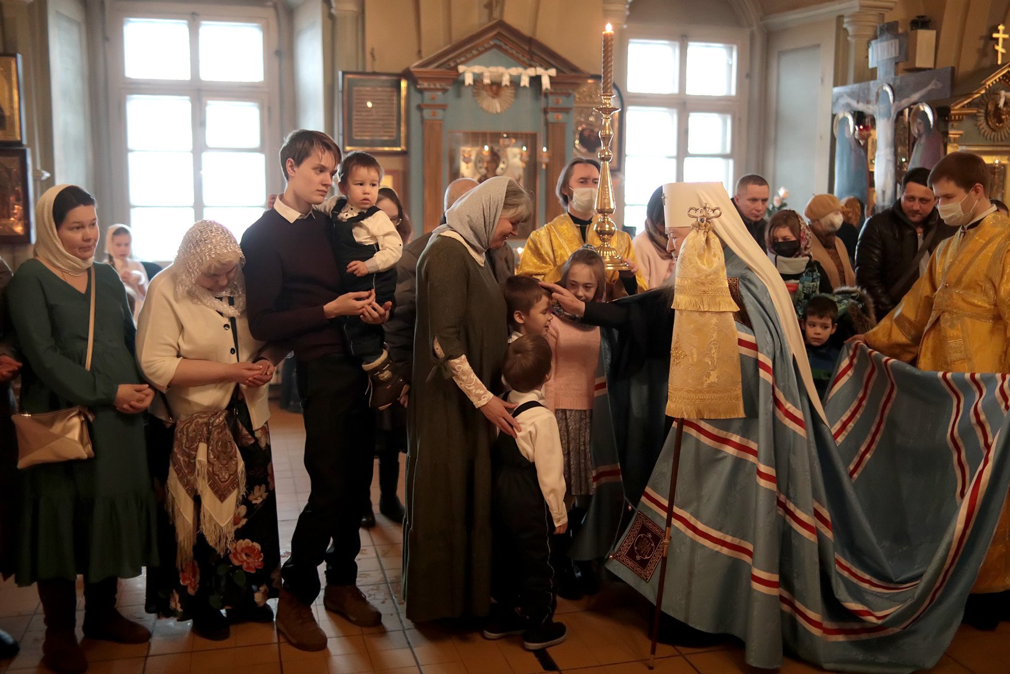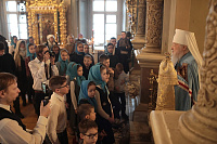 До начала Великого поста осталась одна неделя, которая обычно проводится с радостью, люди много общаются друг с другом. Пусть подготовка к Великому посту настроит вас, возлюбленные, на молитву, на исполнение заповедей Божиих. Время пролетит быстро, и по завершении Великого поста мы будем в духовном ликовании встречать праздник Светлого Христова Воскресения. Я очень рад, что сегодня вы во множестве пришли в наш храм. Вижу много детей и не могу еще раз не сказать о том, что хор нашей воскресной школы продолжает участвовать в богослужении и услаждает нас своим прекрасным пением. Дай Бог всем вам здравия, спасения и во всём благого поспешения. Я поздравляю вас с праздником, а причастников и причастниц – с принятием Святых Христовых Таин. Храни вас всех Господь!»