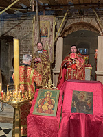 14 марта, в день памяти преподобномученицы Дарии Зайцевой, в Знаменском храме села Холмы Божественную литургию совершил благочинный Истринского церковного округа протоиерей Димитрий Подорванов в сослужении настоятеля храма протоиерея Георгия Савочкина и духовенства благочиния. На празднике впервые прозвучал нотный кондак преподобномученице Дарии, написанный композитором Д. Махаловым.