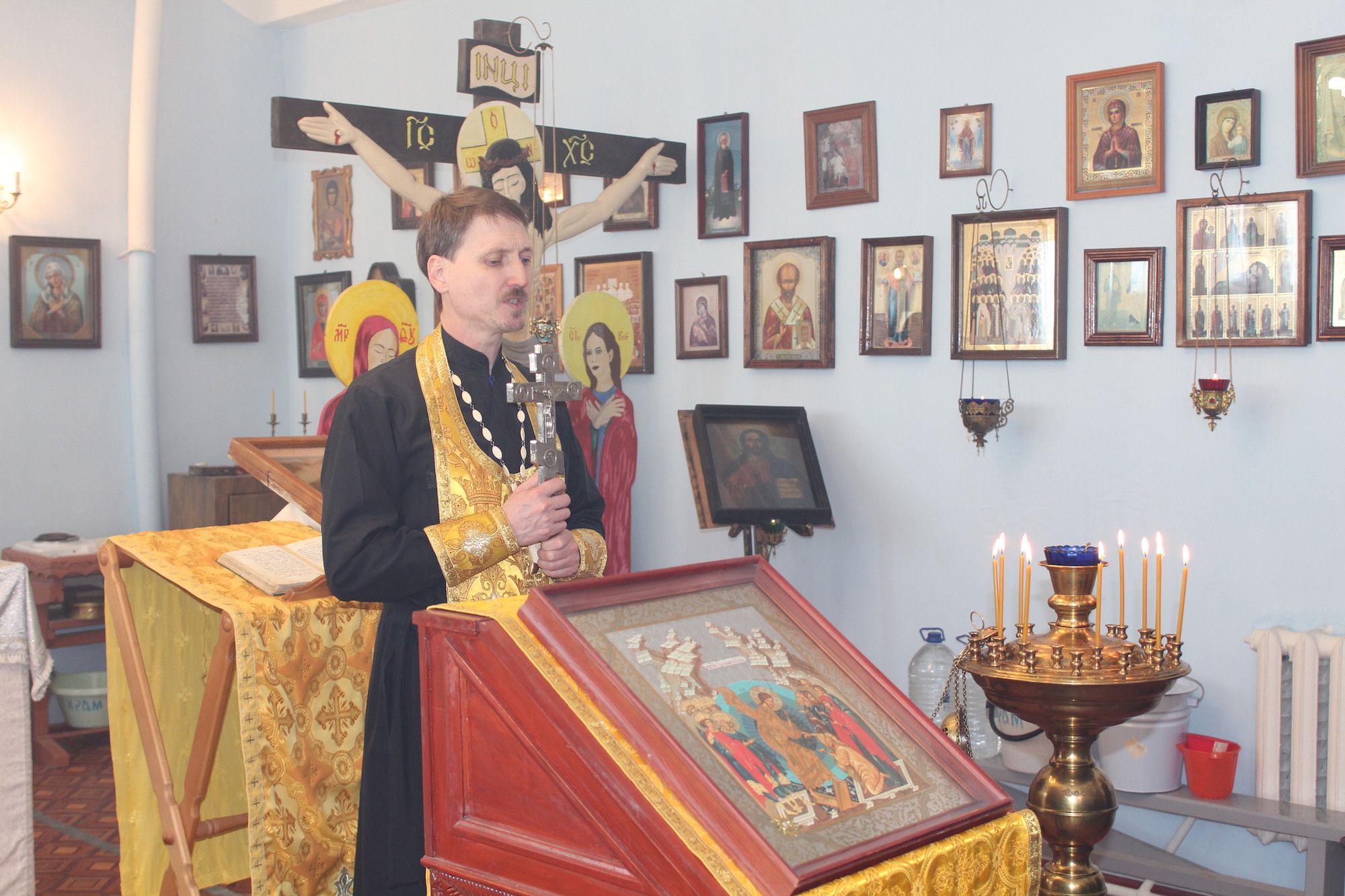 30 марта в домовом Серафимовском храме исправительной колонии № 6 города Коломны духовник колонии, настоятель Покровского храма протоиерей Сергий Федченко совершил чин малого освящения воды для заключенных. В ходе собрания кружка по изучению «Основ православного вероучения» была проведена беседа «Неделя Торжества Православия».