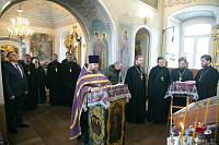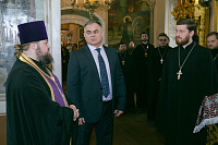 31 марта в Спасском храме г. Солнечногорска состоялась встреча временно исполняющего полномочия главы городского округа Солнечногорска Виктора Родионова с настоятелями храмов благочиния. Встреча началась с молебна перед началом доброго дела, после которого благочинный церквей Солнечногорского округа протоиерей Антоний Тирков обратился к Виктору Валерьевичу и всем собравшимся с приветственным словом. Затем прошел круглый стол, во время которого были затронуты вопросы взаимодействия Церкви и администрации.