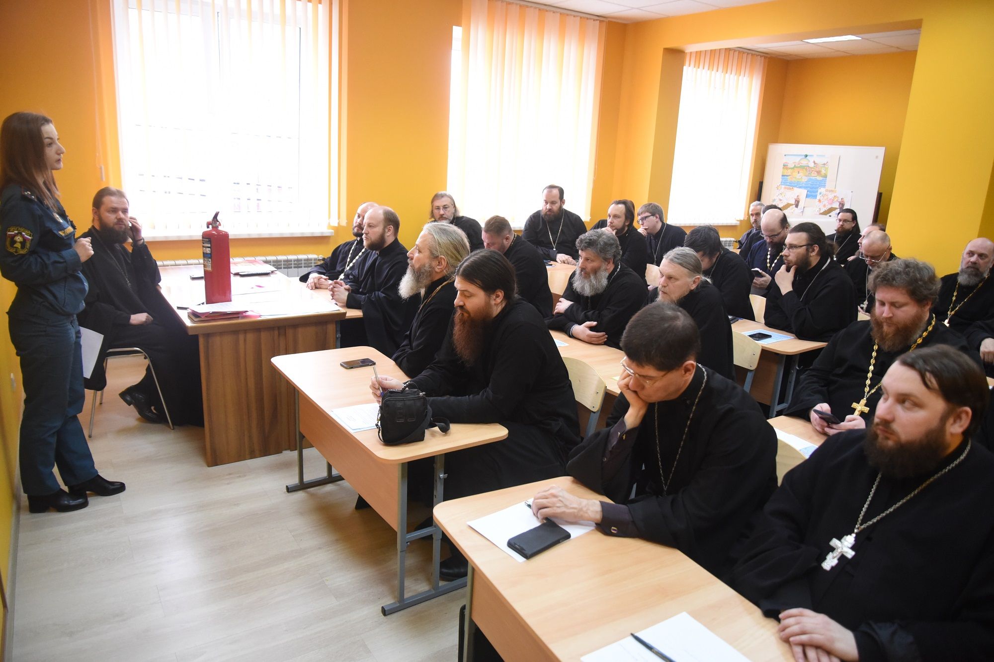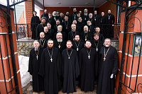 31 марта в Никольском храме села Ангелово состоялось братское совещание духовенства Красногорского благочиния, которое началось с соборного служения Литургии Преждеосвященных Даров. В здании воскресной школы прошло братское совещание, на котором благочинный Красногорского округа иеромонах Николай (Летуновский) обсудил с духовенством вопросы приходской деятельности. В мероприятии приняла участие Ольга Саловатова, инспектор отдела надзорной деятельности и профилактической работы по г.о. Красногорск, которая провела инструктаж по пожарной безопасности. На пастырском семинаре с докладом «Практика соборования и причастия больных вне храма при разных степенях физического недомогания» выступил клирик Успенского храма г. Красногорска священник Андрей Плотников.