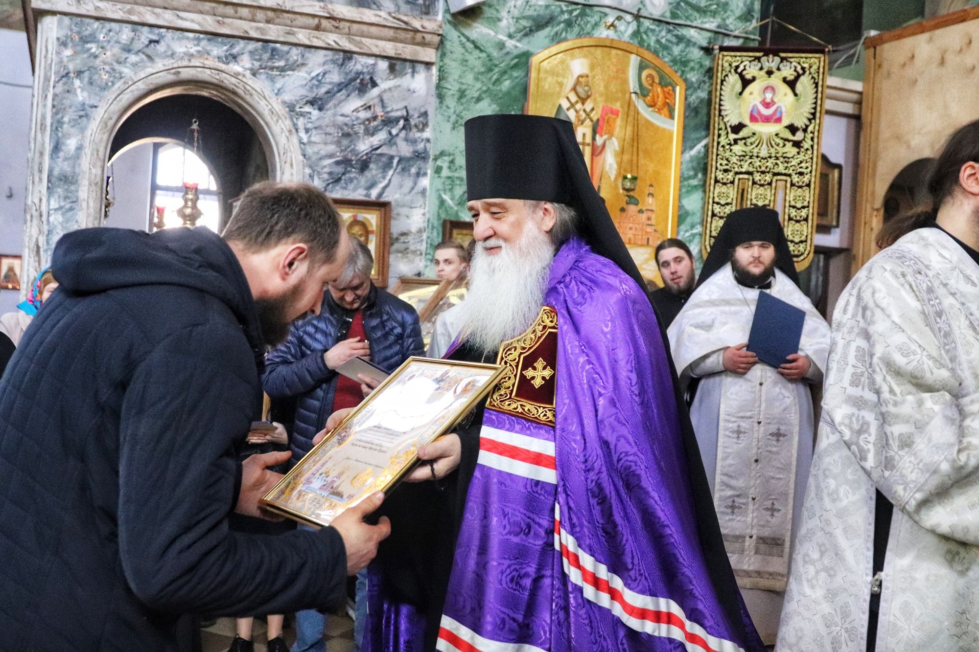 Темы: епископ Роман, восстановление порушенных святынь, освящение храма, монастыри, награждение
