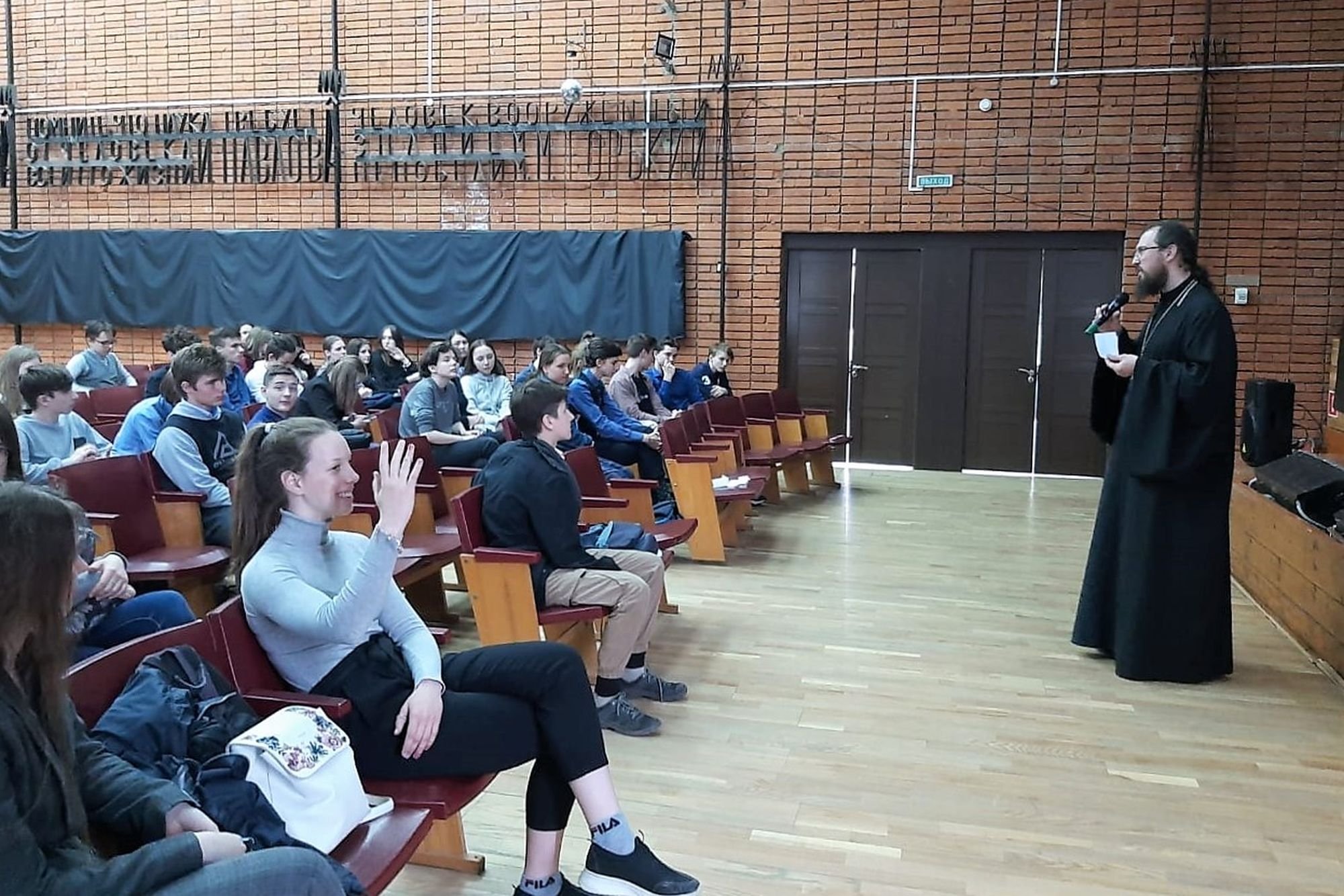 21 апреля клирик собора Николы Белого г. Серпухова священник Антоний Кабанов встретился со старшеклассниками гимназии “Пущино”.
