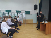 23 апреля настоятель Кирилло-Мефодиевского храма поселка Оболенск священник Максим Котович провел встречу с учащимися 9 класса 17 школы.