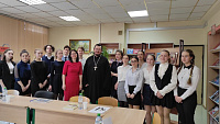 27 апреля в лицее № 4 г. Дмитрова прошла встреча учеников с заместителем благочинного Дмитровского церковного округа, настоятелем Сретенского храма г. Дмитрова протоиереем Димитрием Скидаленко. Ребята из гуманитарного класса 10 «Б» разделили вопросы на блоки «Вера и образование», «Вера и семья», «Общество», «Любовь».