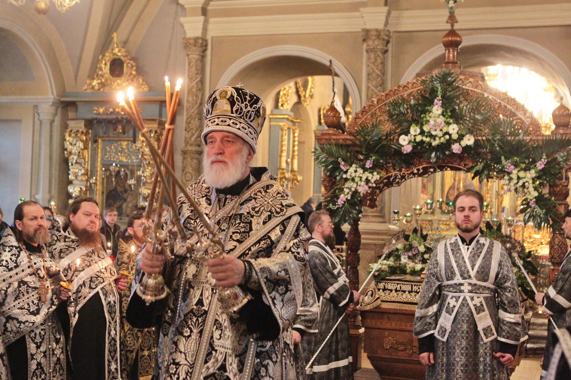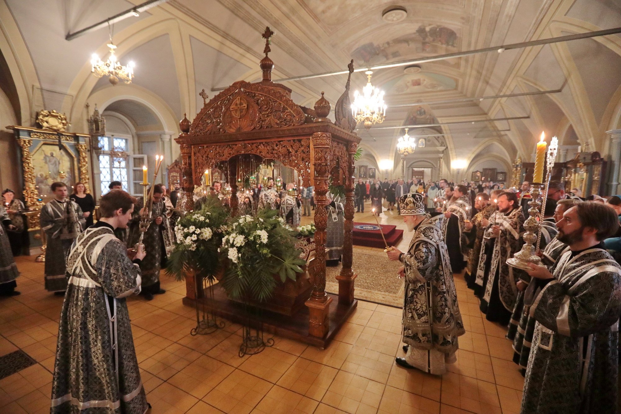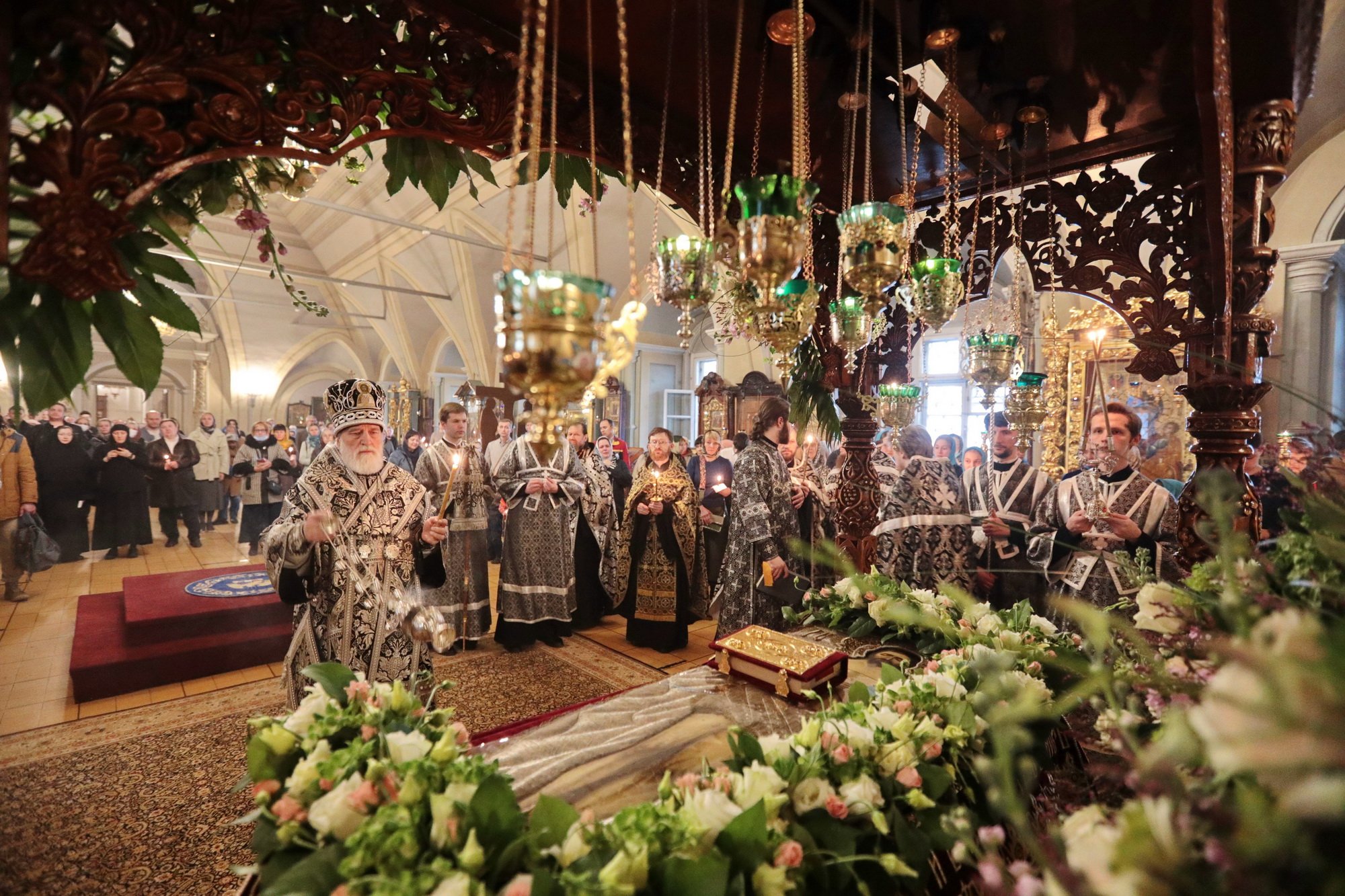 Вечером 30 апреля, в канун Великой субботы, митрополит Крутицкий и Коломенский Павел совершил утреню с чином погребения Плащаницы Господа нашего Иисуса Христа в Успенском храме Новодевичьего монастыря.