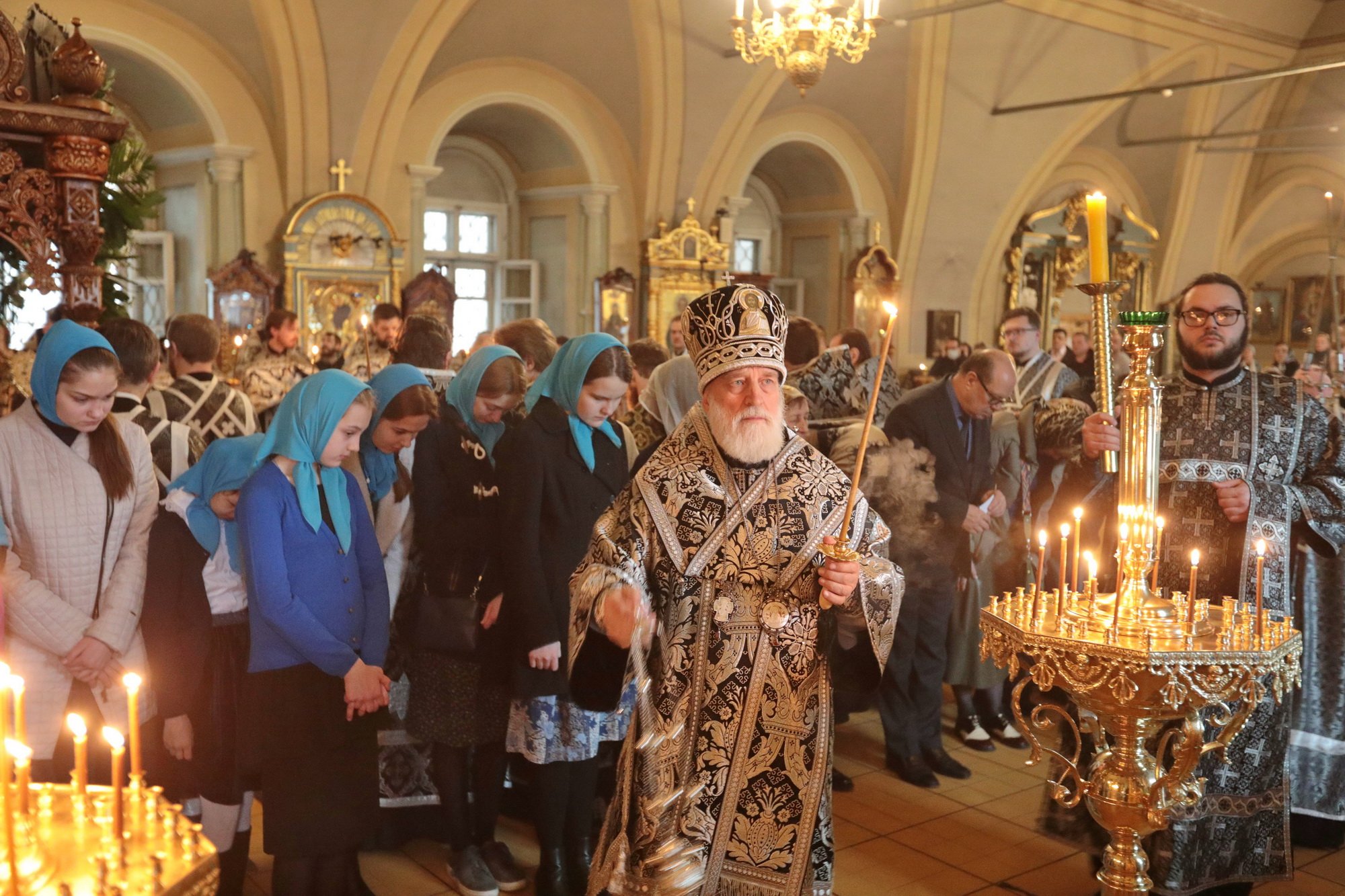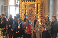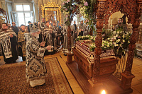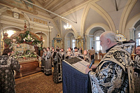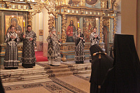 Его Высокопреосвященству сослужили клирики обители. За богослужением молилась игумения Новодевичьего монастыря Маргарита (Феоктистова).
