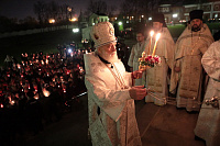 Из Иерусалимского Храма Гроба Господня в Николо-Угрешский монастырь был доставлен благодатный огонь. Владыка митрополит возжег им свечи прихожан, пришедших в эту ночь в Николо-Угрешскую обитель.