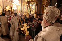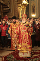 После чтения Евангелия Владыка огласил Пасхальное послание Святейшего Патриарха Московского и всея Руси Кирилла архипастырям, пастырям, диаконам, монашествующим и всем верным чадам Русской Православной Церкви.