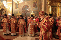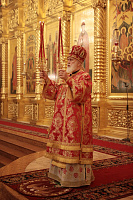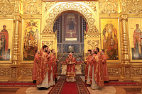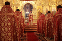 Его Высокопреосвященству сослужили наместник обители игумен Варфоломей (Петров) и клирики обители.