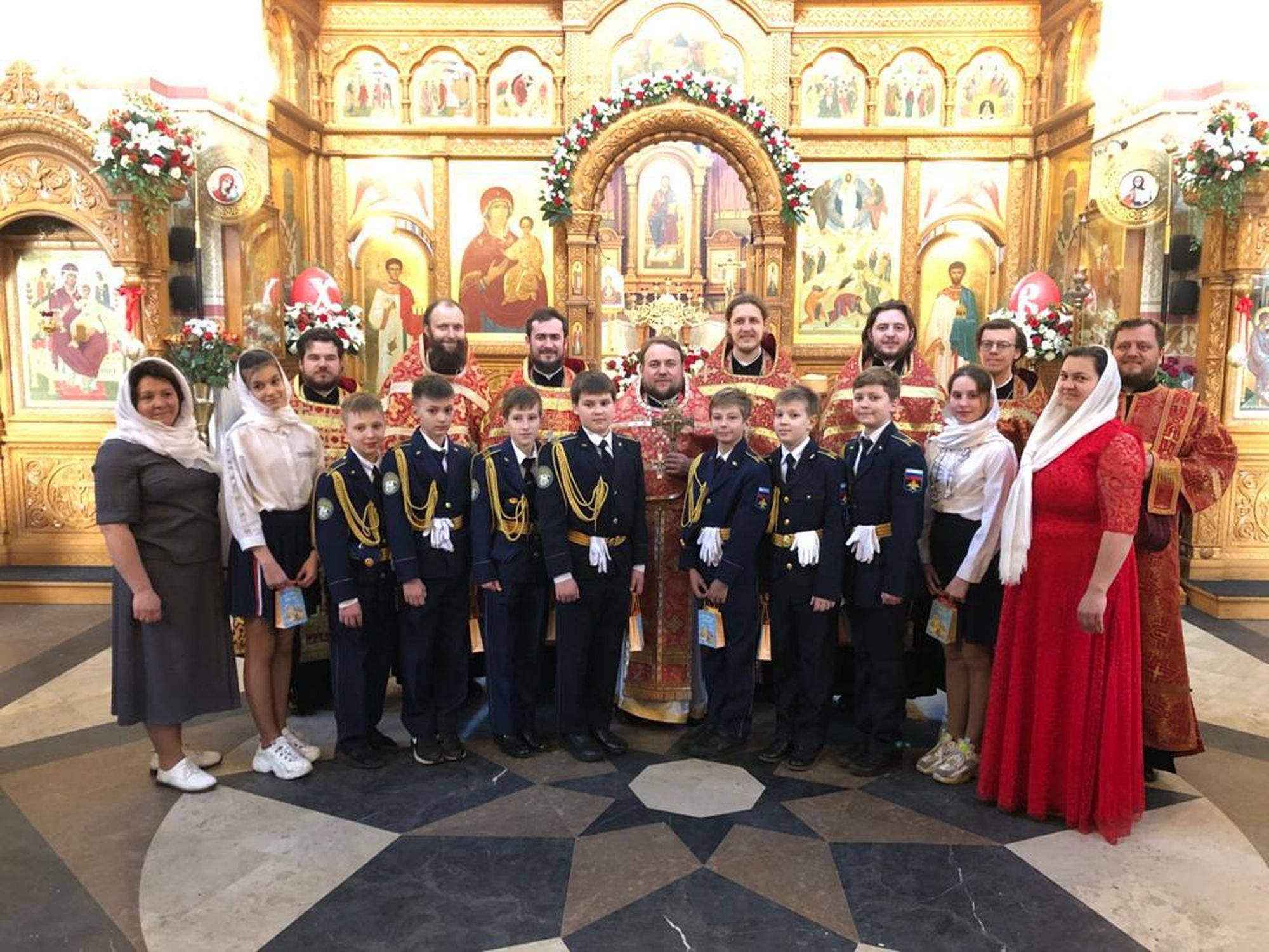 2 мая на богослужении Великой Пасхальной Вечерни в Преображенском храме г. Люберцы приняли участие в клиросном пении кадеты-юнармейцы из люберецкой Кадетской школы. По окончании службы благочинный церквей Люберецкого округа священник Вячеслав Новак вручил ребятам пасхальные подарки. После чаепития кадеты смогли позвонить в колокола.