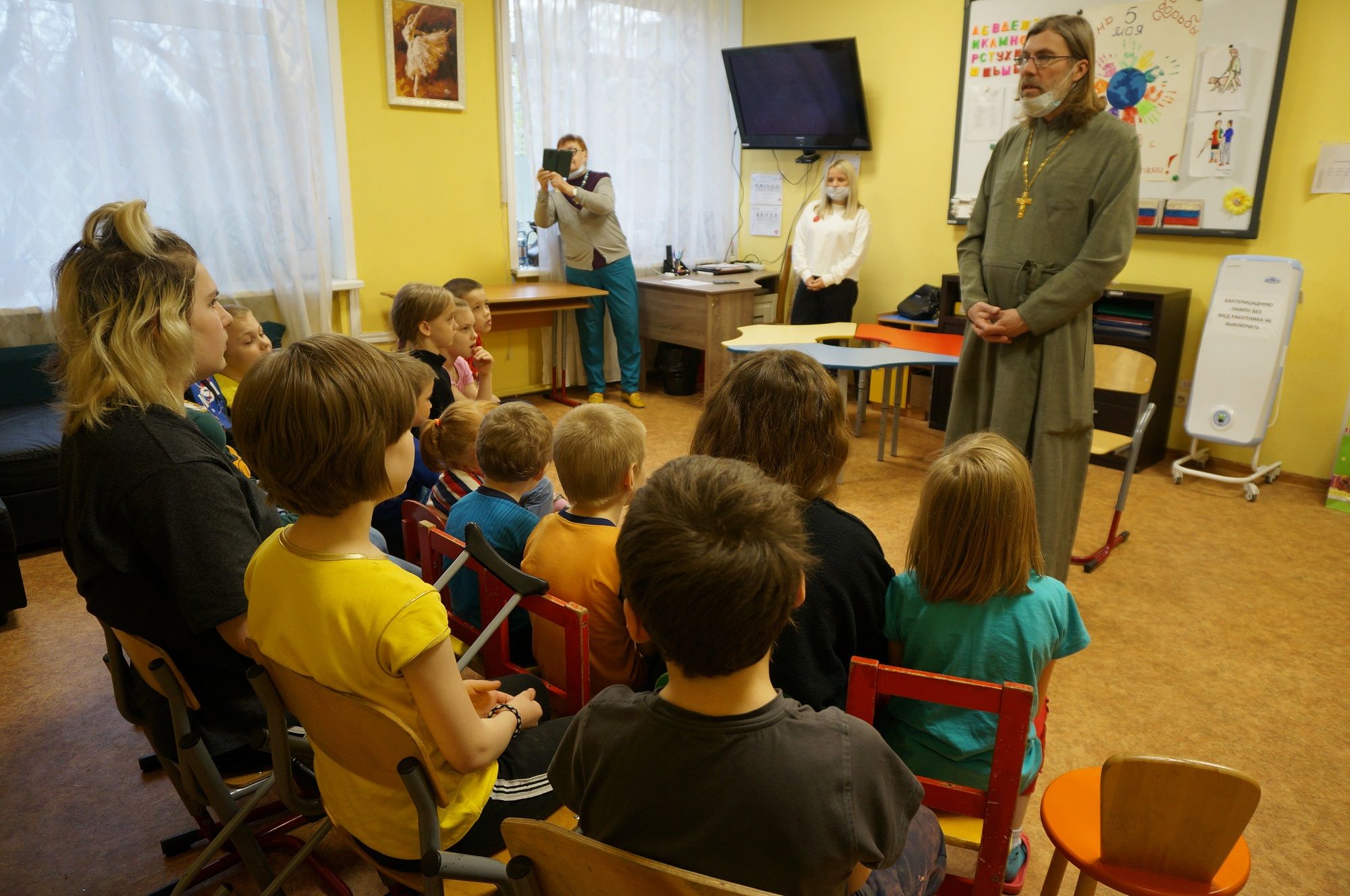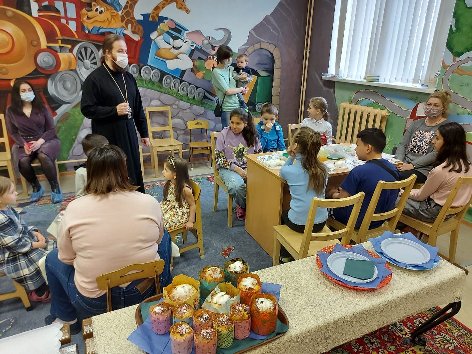 27 апреля настоятель Казанского храма г. Котельники протоиерей Павел Сударев посетил детский реабилитационный центр «Кентавр». Для детей центра был проведен мастер класс по разукрашиванию пасхальных яиц.