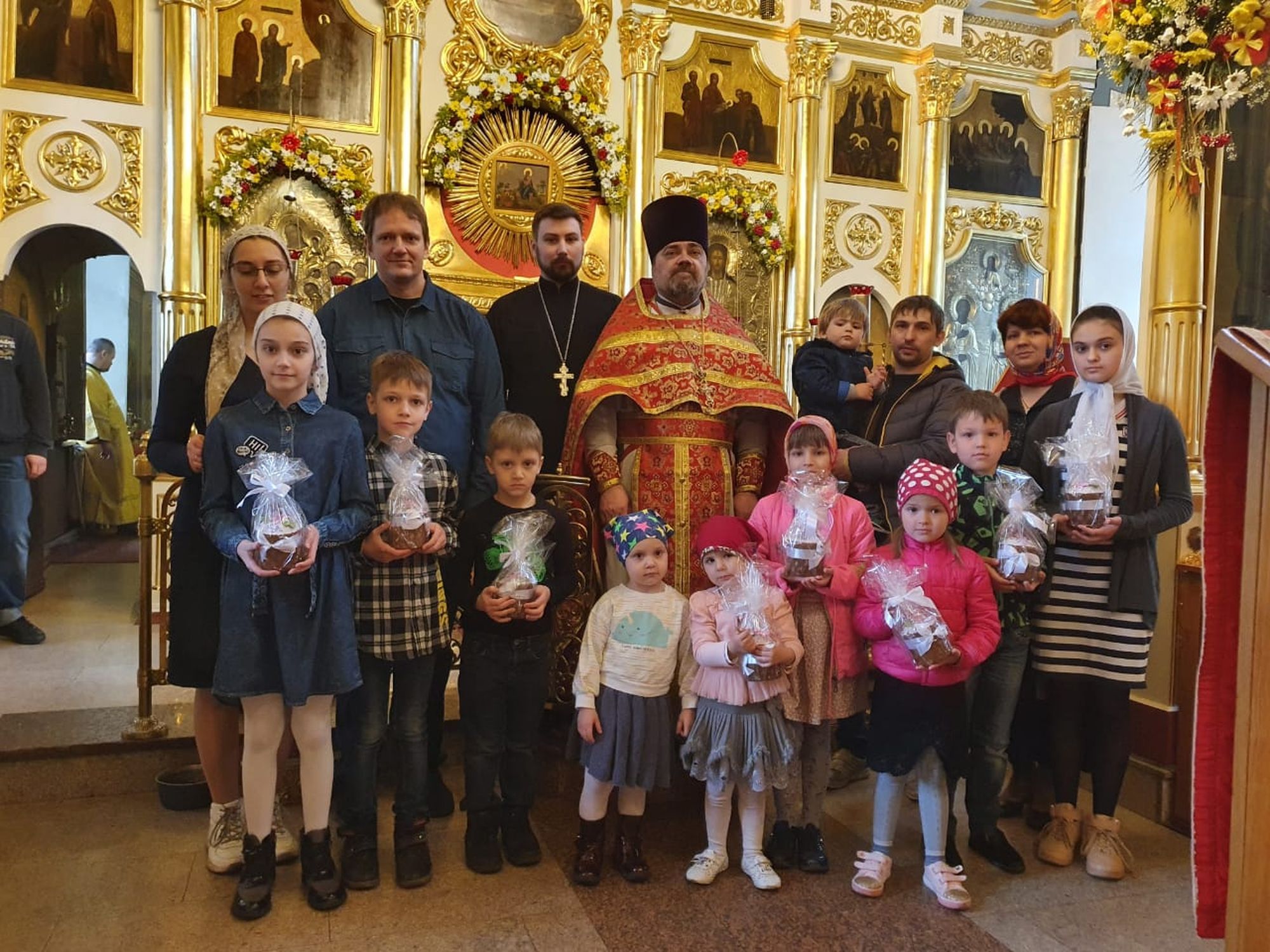9 мая в Успенском храме за праздничной Литургией молились многодетные семьи, окормляемые приходом. По окончании Литургии настоятель храма протоиерей Сергий Ганин обратился к присутствующим с пастырским словом. Многодетным семьям были вручены пасхальные подарки и оказана материальная помощь. В тот же день в воскресной школе состоялся праздничный концерт. Воспитанники школы читали стихи и пили чай. Дети получили пасхальные подарки.