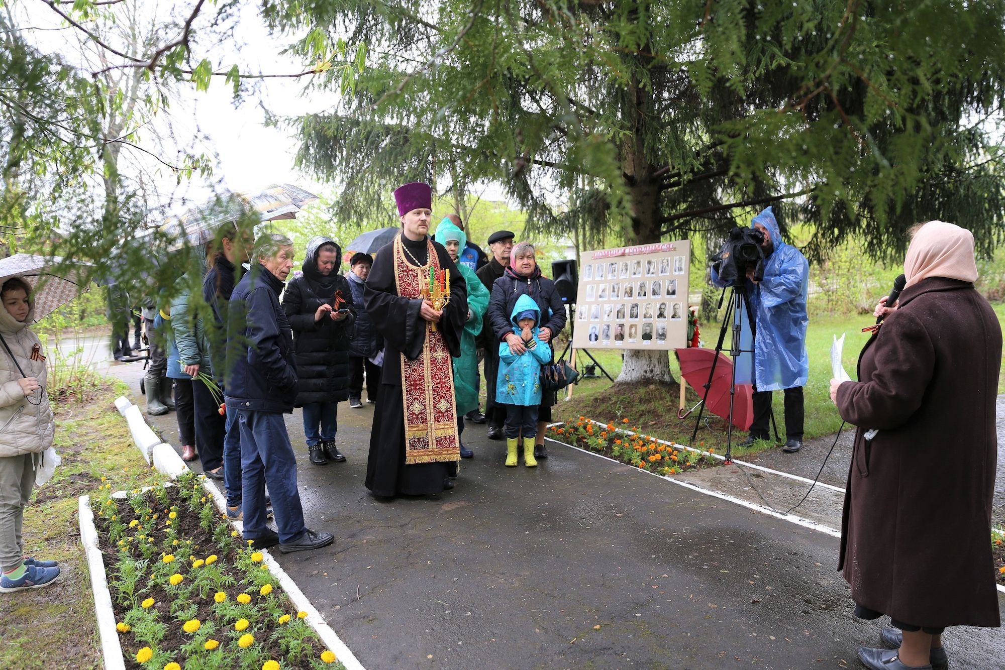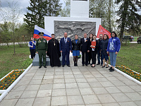 11 мая настоятель Казанского храма поселка Радужный священник Александр Кузнецов совершил заупокойную литию у поселкового воинского мемориала.
