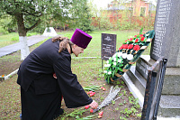 Настоятель Успенского храма села Андреевское священник Павел Пасичнык возложил цветы к памятнику Герою Российской Федерации А. С. Маслову – уроженцу села Андреевское.