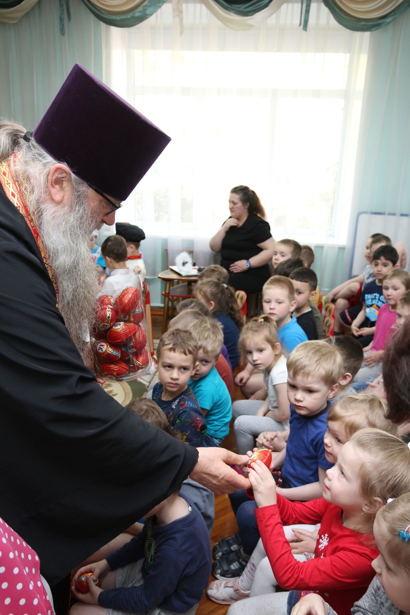 11 мая в детском саду №35 «Дельфин» микрорайона Авиационный г. Домодедово прошел детский пасхальный праздник. Почетным гостем праздника стал настоятель Никольского храма села Лямцино протоиерей Александр Трушин, который рассказал воспитанникам о Воскресении Христовом. Затем состоялась традиционная пасхальная встреча с педагогическим составом.