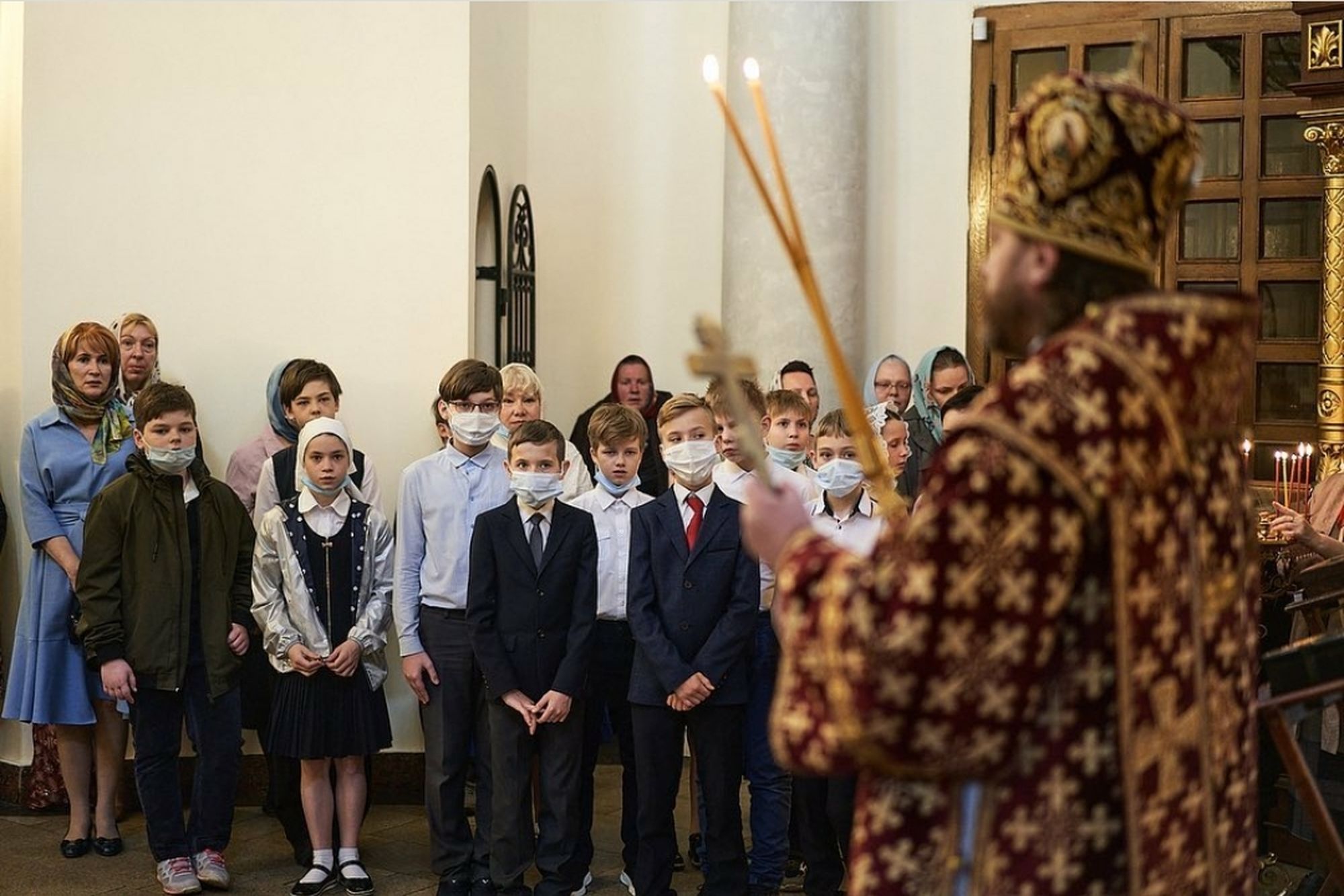 За богослужением пел молодежный хор храма, молились воспитанники православной школы «Лествица» и прихожане храма.