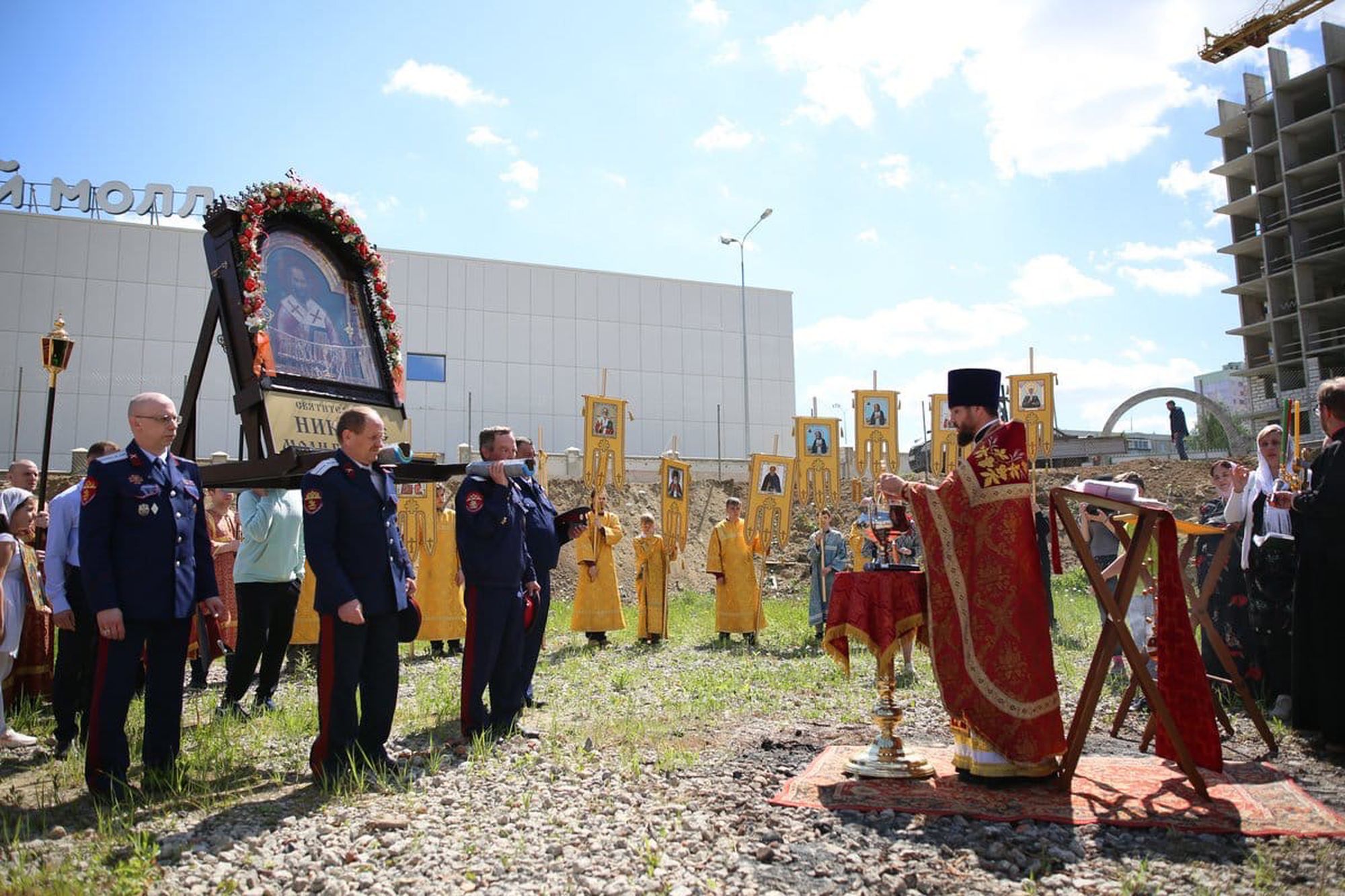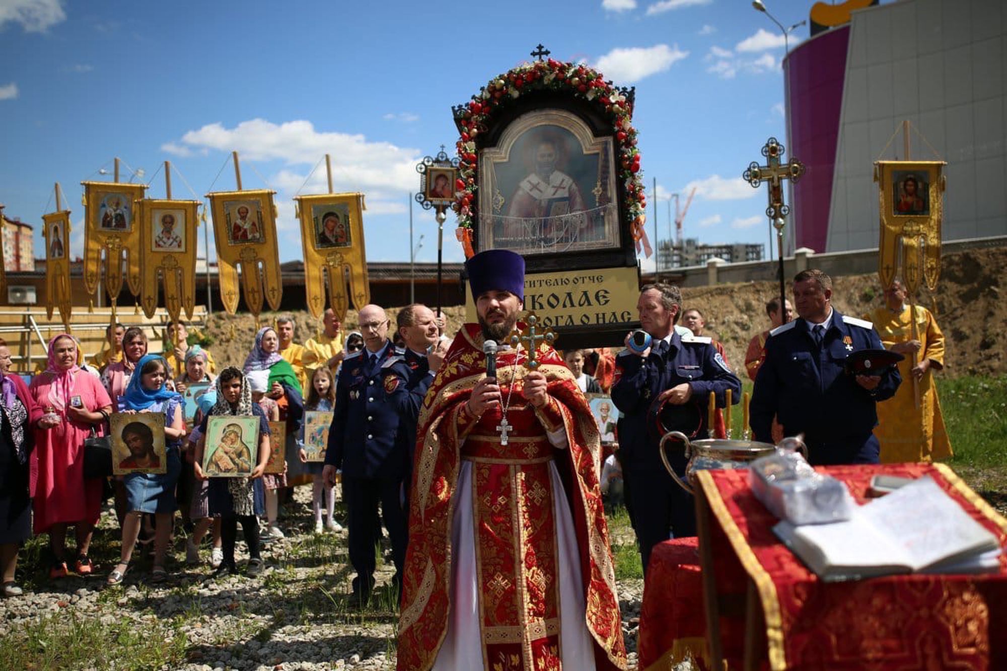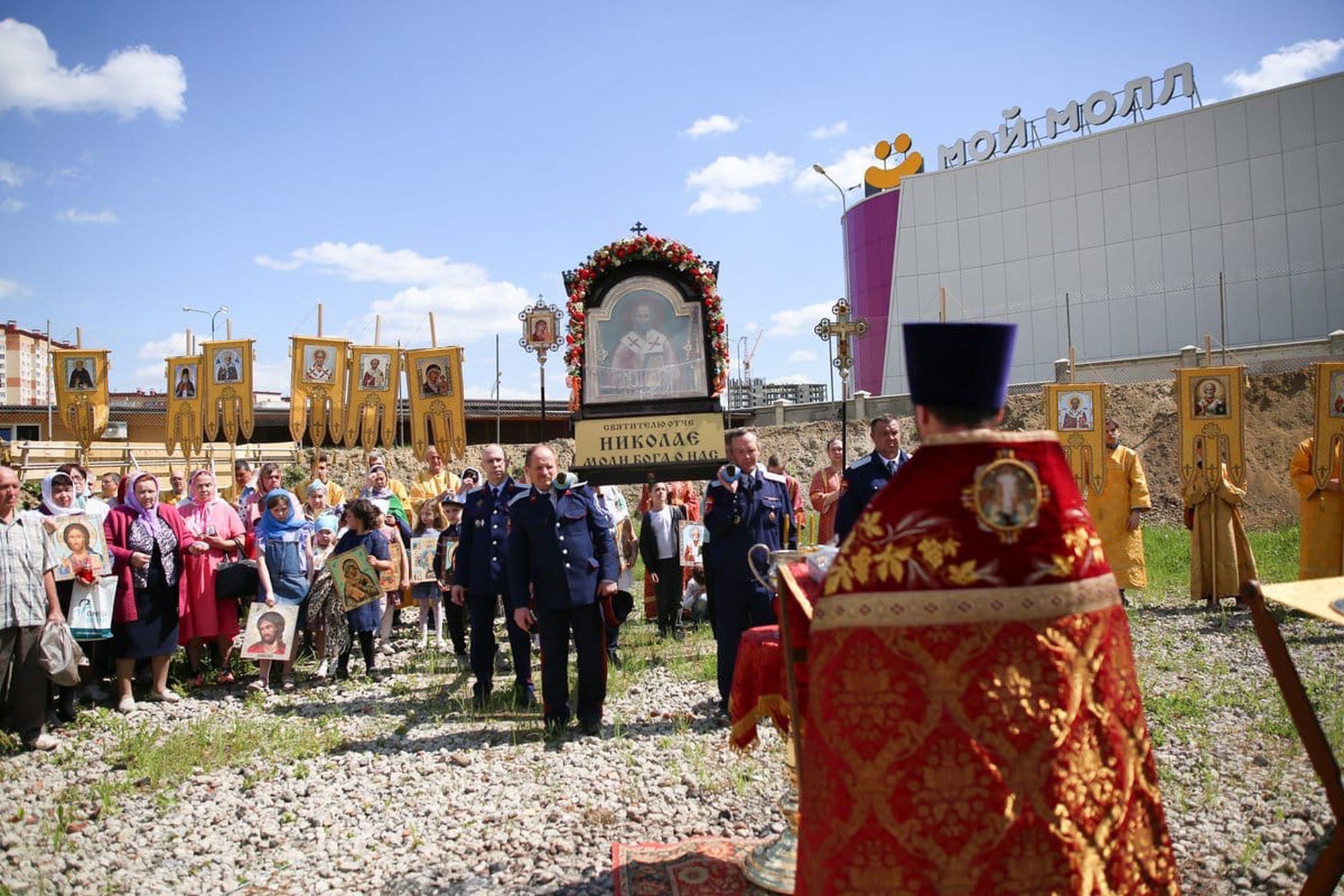 По окончании крестного хода был совершен водосвятный молебен на месте строительства Никольского храма. Настоятель - священник Николай Усынин обратился к молящимся с поздравительным словом и поблагодарил всех участников. В завершение праздника гости были приглашены на трапезу.
