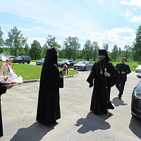 У врат обители Владыку встречали игумения Серафима (Исаева) с сестрами. Его Преосвященство сопровождали исполняющий обязанности секретаря Одинцовской епархии священник Дионисий Казанцев и священник Василий Лосев.