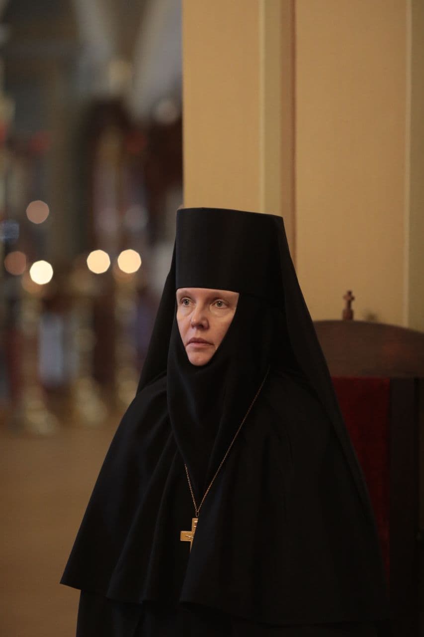 За богослужением молилась игумения Новодевичьего монастыря Маргарита (Феоктистова).