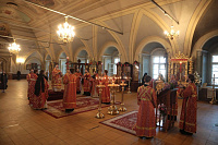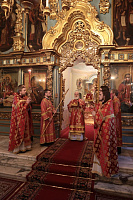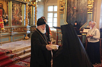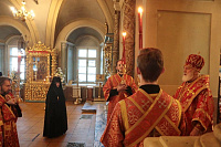 Его Высокопреосвященству сослужили клирики обители.