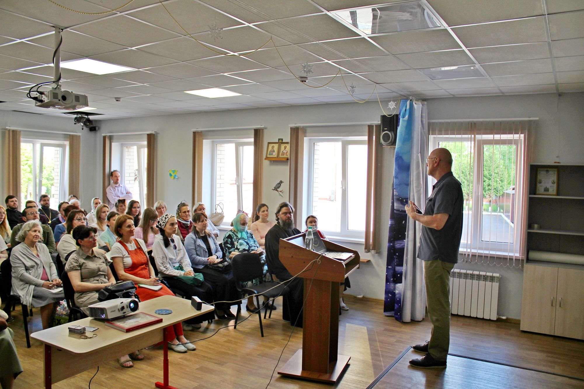 25 мая в приходском центре собора Всех святых, в земле Российской просиявших, г. Домодедово состоялась встреча-семинар с Олегом Воскресенским, магистром богословия, кандидатом педагогических наук, соавтором учебной программы и учебников «Основы православной культуры» и «Основы мировых религиозных культур», пономаря Воскресенского храма в г. Фридли, штат Миннесота (США).