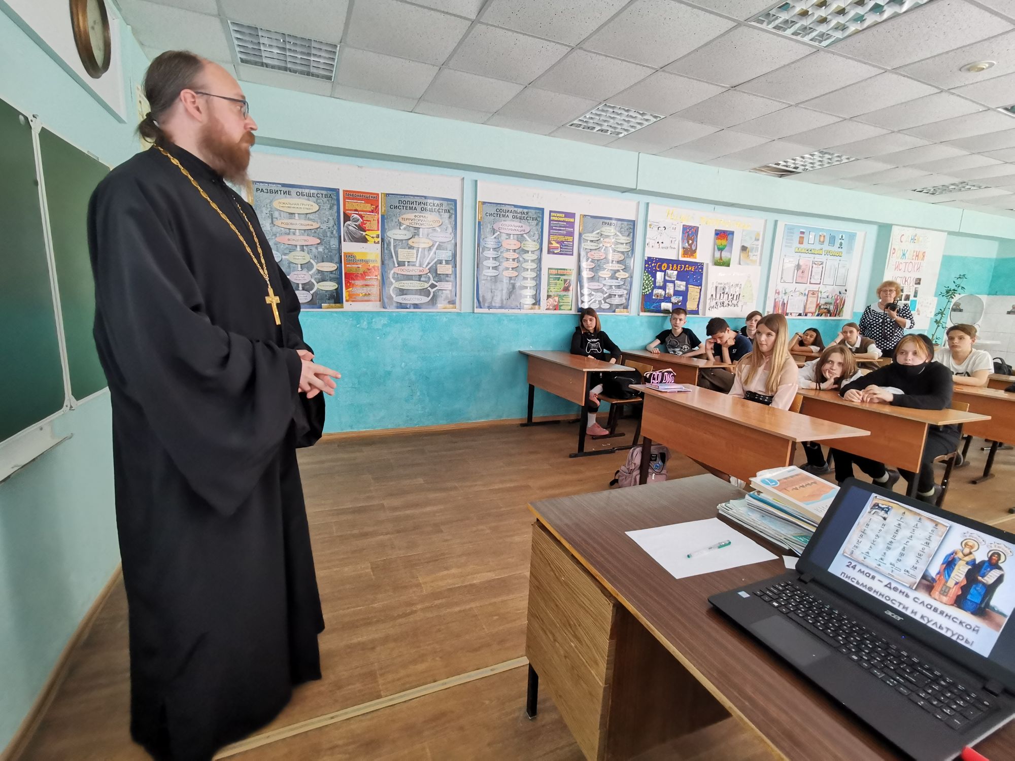 17 мая в Дубне настоятель храма Великомученика Пантелеимона священник Леонид Салтыков провел уроки с учащимися седьмого и девятого классов школы №9, а 25 мая – с учениками четвертого и восьмого классов школы №2, посвященные равноапостольным Кириллу и Мефодию.