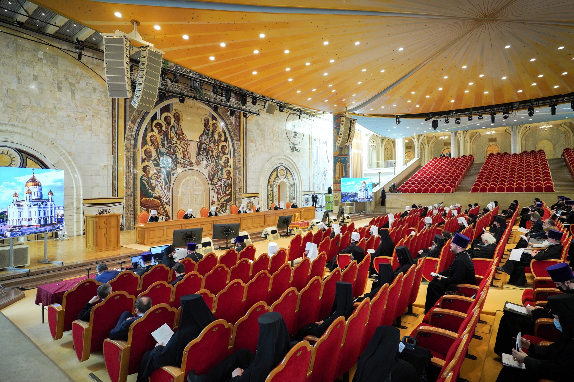 «Рад, что, несмотря на сложные обстоятельства времени, мы смогли собраться на очередной пленум Межсоборного присутствия. Уже более одиннадцати лет этот совещательный орган, которому нет аналогов в православном мире, помогает Архиерейскому Собору и Священному Синоду, готовя решения, имеющие большое практическое значение в современной жизни Церкви, практически готовя все проходящие у нас Соборы. Вот и сегодня, а также в следующие дни нам предстоит обсудить некоторые проекты текстов для передачи их Архиерейскому Собору, который, Богу содействующу, пройдет в ноябре сего года. Особые слова приветствия обращаю сегодня к тем, кто вошел в состав Межсоборного присутствия со времени нашего последнего пленума в январе 2020 года», — сказал Святейший Владыка.