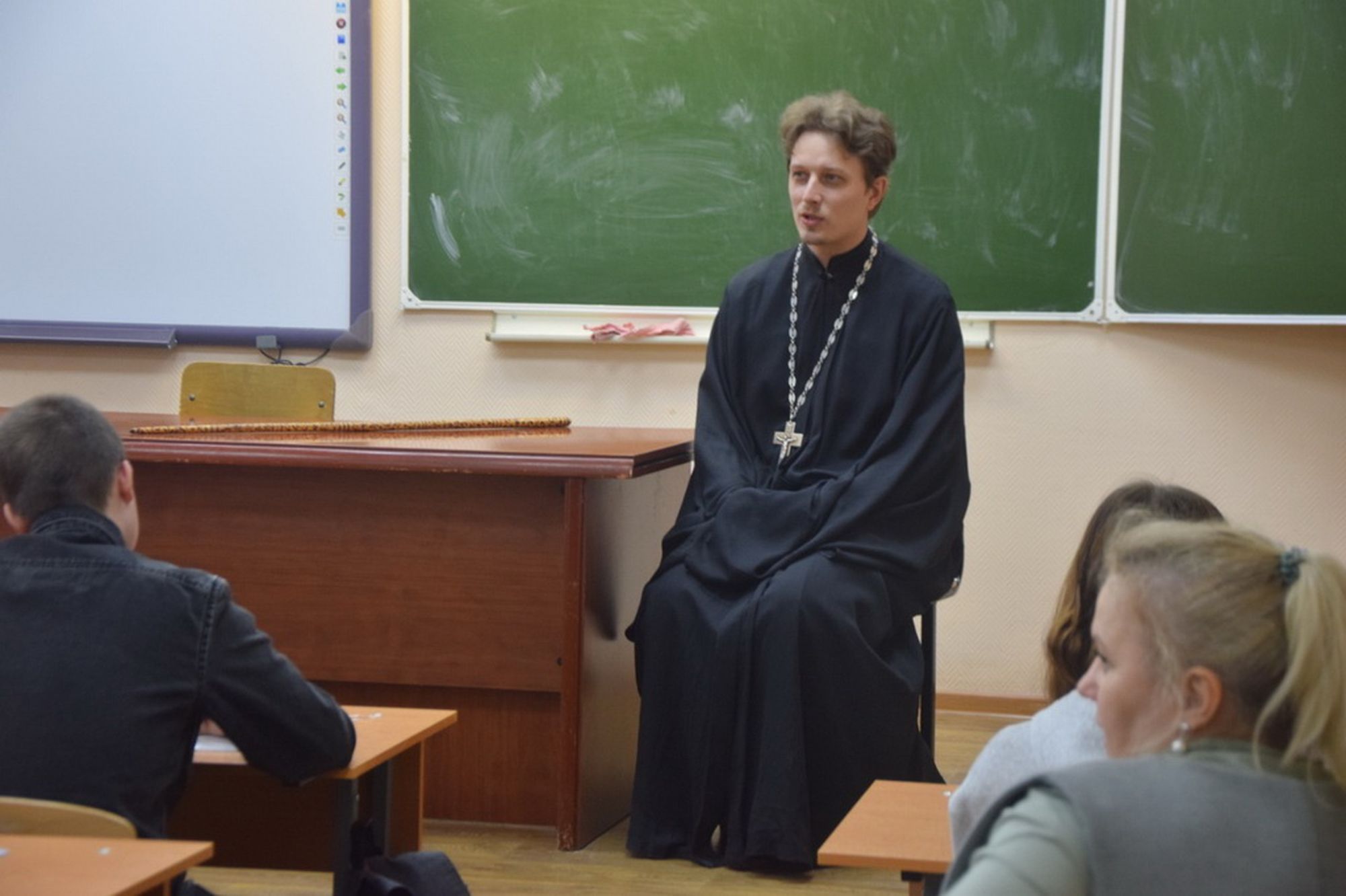 20 мая в «Физтех-Колледже» прошла встреча студентов с клириком храма Преображения Господня священником Иоанном Слобжиным. Он в течение нескольких часов отвечал на вопросы молодых людей о семье, вере и о Боге. В завершение встречи с руководством колледжа были намечены шаги по организации будущей систематической работы по духовно-нравственному воспитанию в учебном заведении.