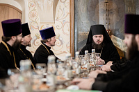 Участники встречи определили составы временных епархиальных комиссий для решения наиболее важных вопросов и выбрали ответственных за духовное окормление епархии.
