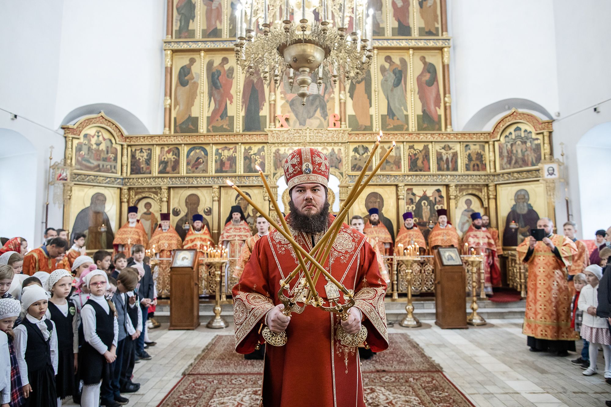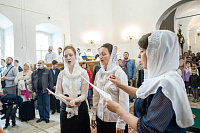 После богослужения епископ Фома поздравил выпускников начальной школы при храме Успения Божией Матери с окончанием первой ступени образования и сказал им напутственные слова.