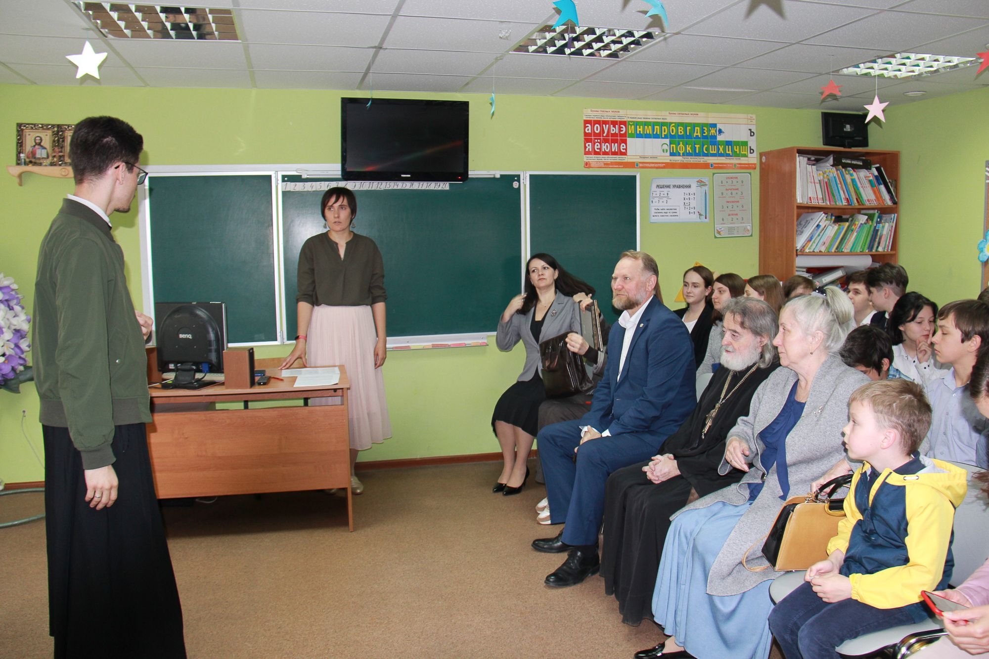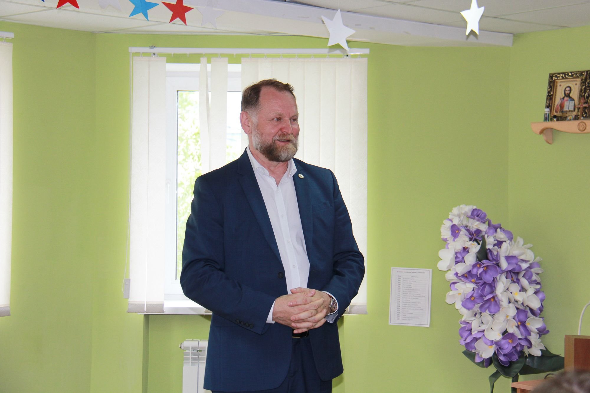 После экскурсии по учебным классам состоялся концерт, посвященный Дню защиты детей. По окончании концерта Андрей Юрьевич вручил педагогам благодарственные письма за развитие программы «Русская классическая школа», отметил особую роль данной программы в становлении духовности и культурной идентичности русского человека и обратился к гимназистам с приветственным словом.