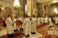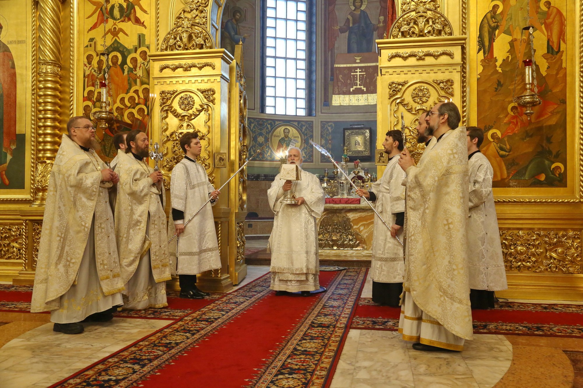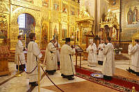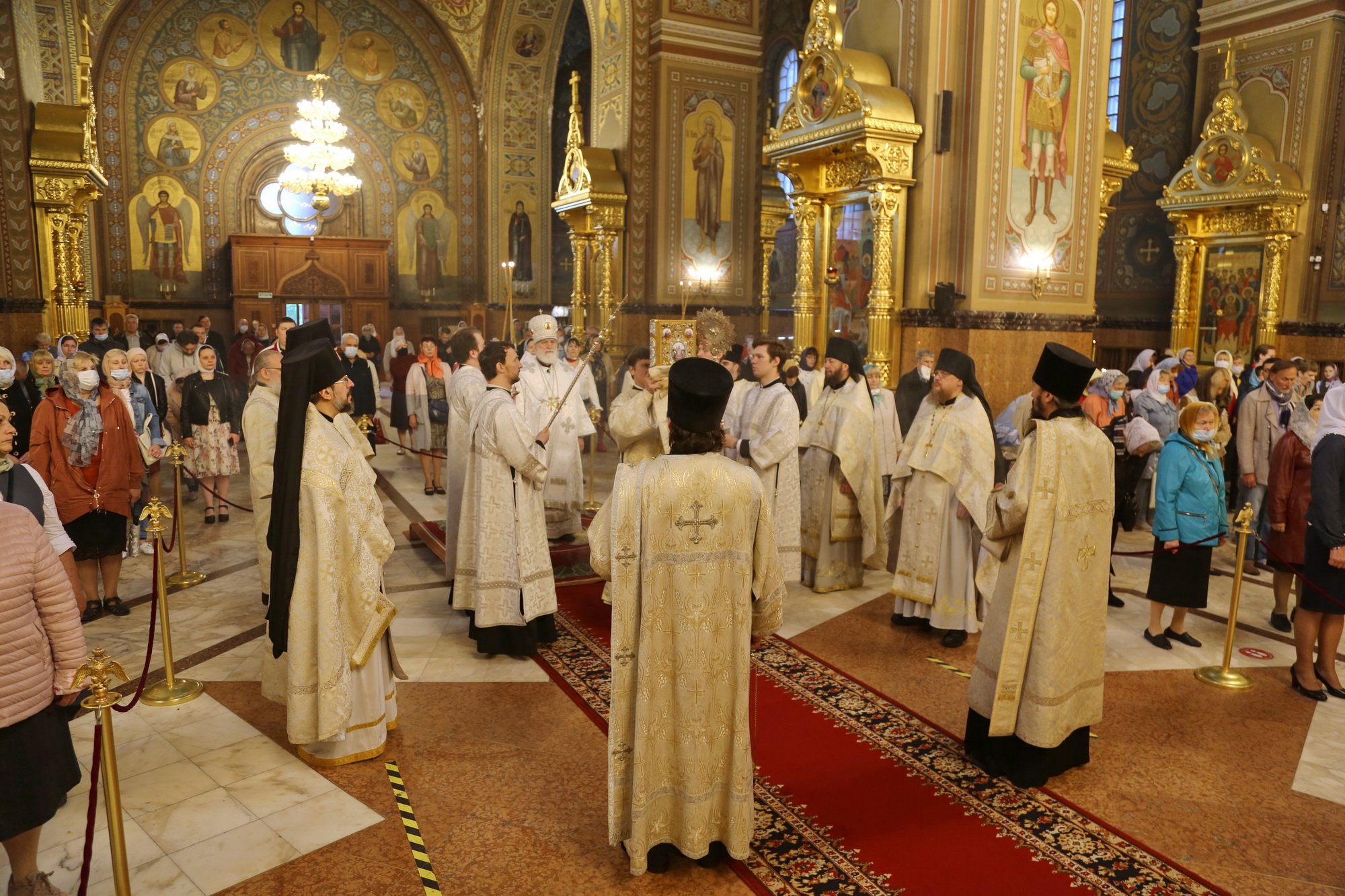 После сугубой ектении были вознесены молитвы о мире в Украине и о прекращении распространения вредоносного поветрия.