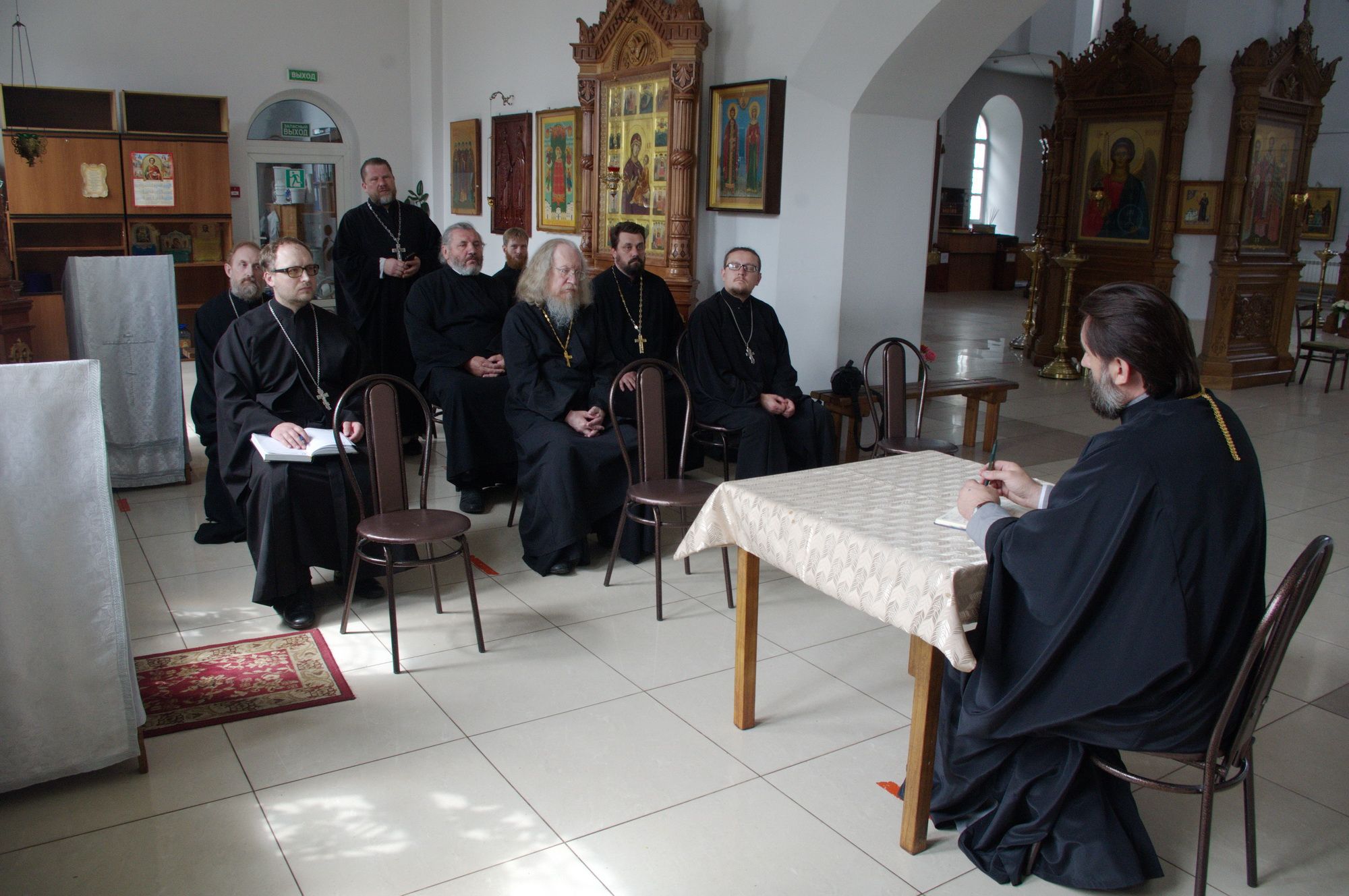 В завершение совещания состоялся пастырский семинар на тему «Участие духовенства благочиния в подготовке газеты «Пантелеимоновский благовест» и размещение материалов в интернет-пространстве».