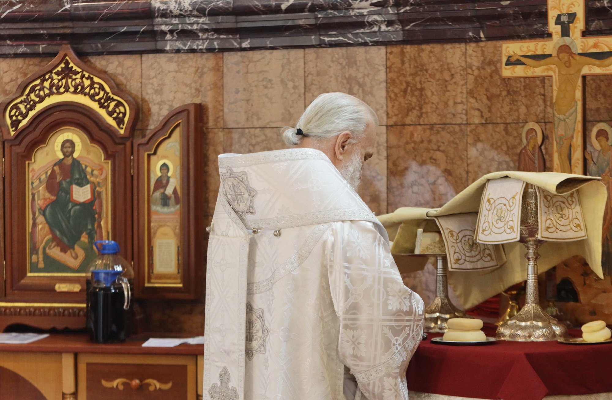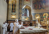 После сугубой ектении были вознесены молитвы о мире в Украине и о прекращении распространения вредоносного поветрия.
