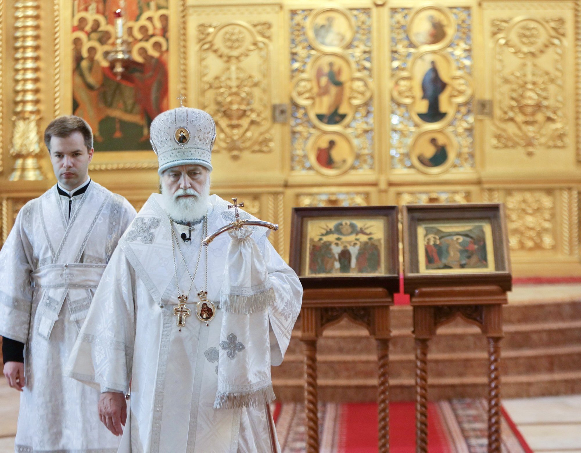 По окончании Литургии было совершено славление празднику Вознесения Господня и святым отцам I Вселенского Собора, а затем митрополит Павел обратился к молящимся с архипастырским словом.