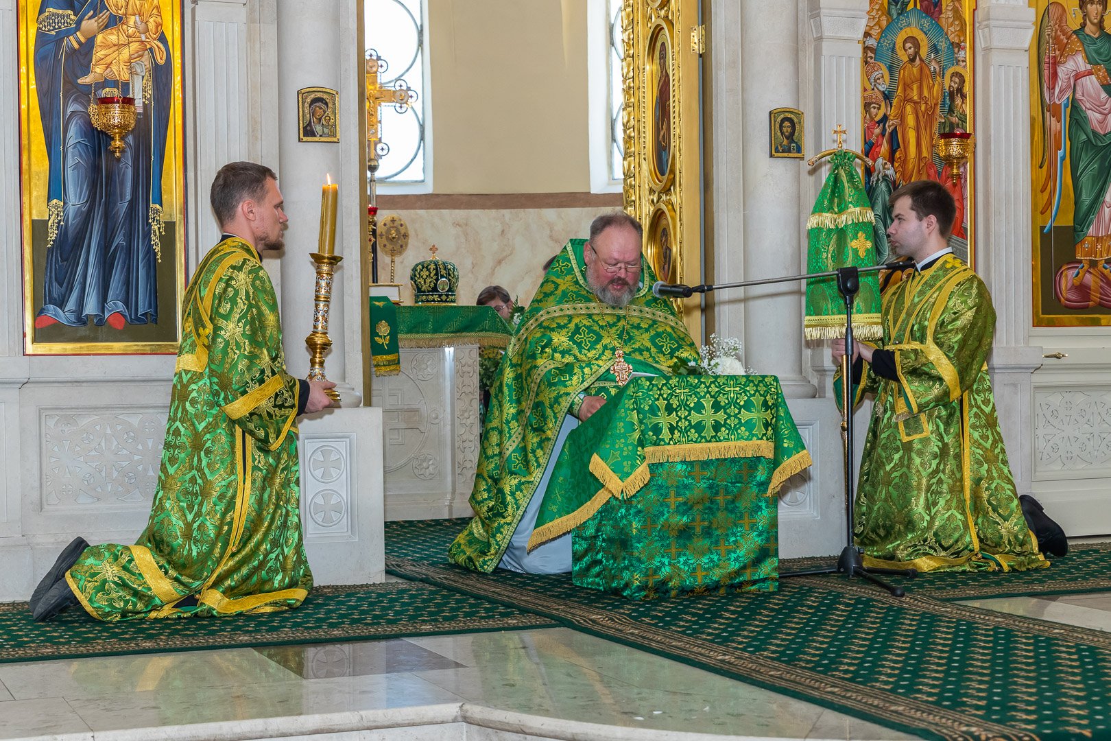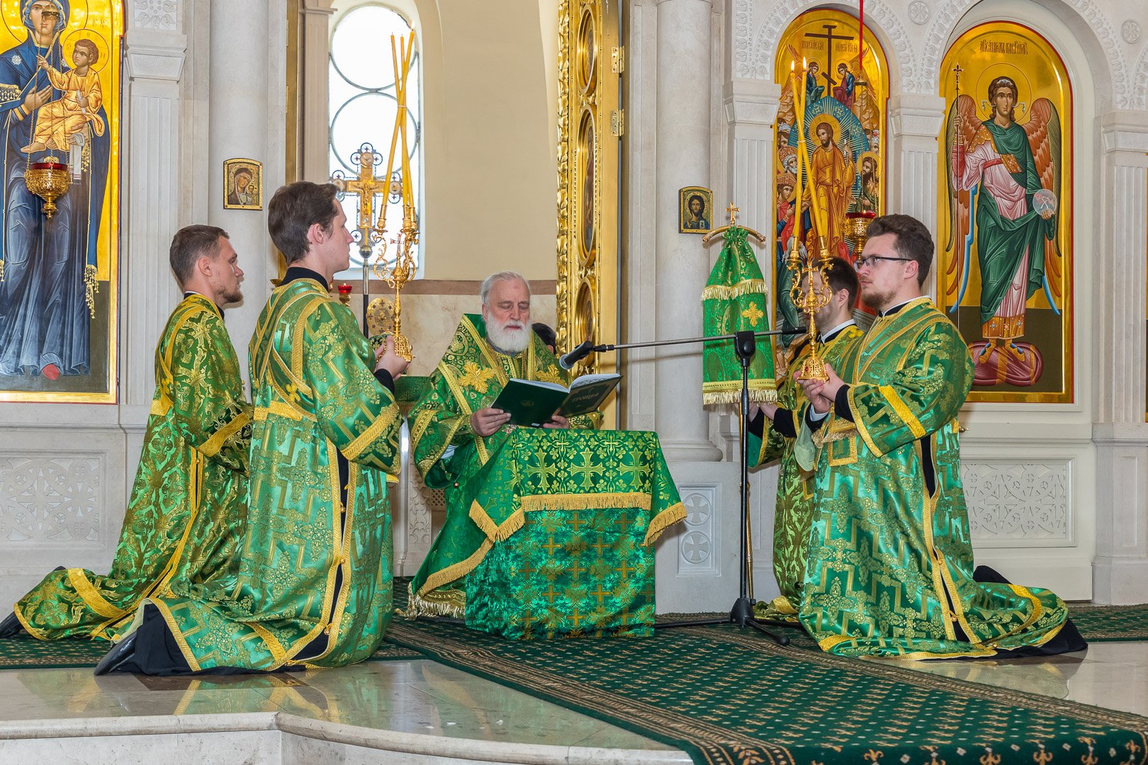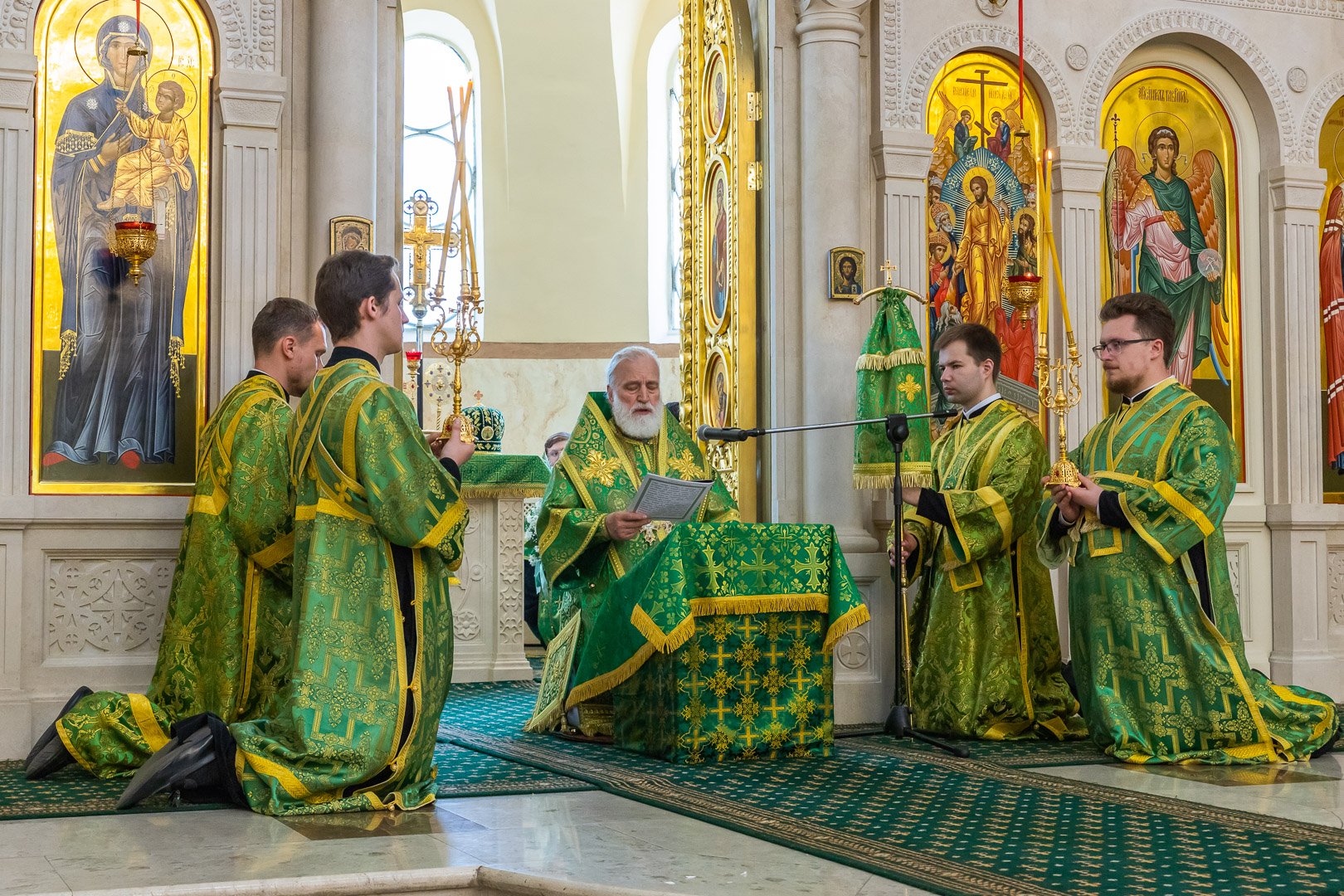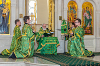 По завершении Божественной литургии была совершена великая вечерня с чтением коленопреклонных молитв.