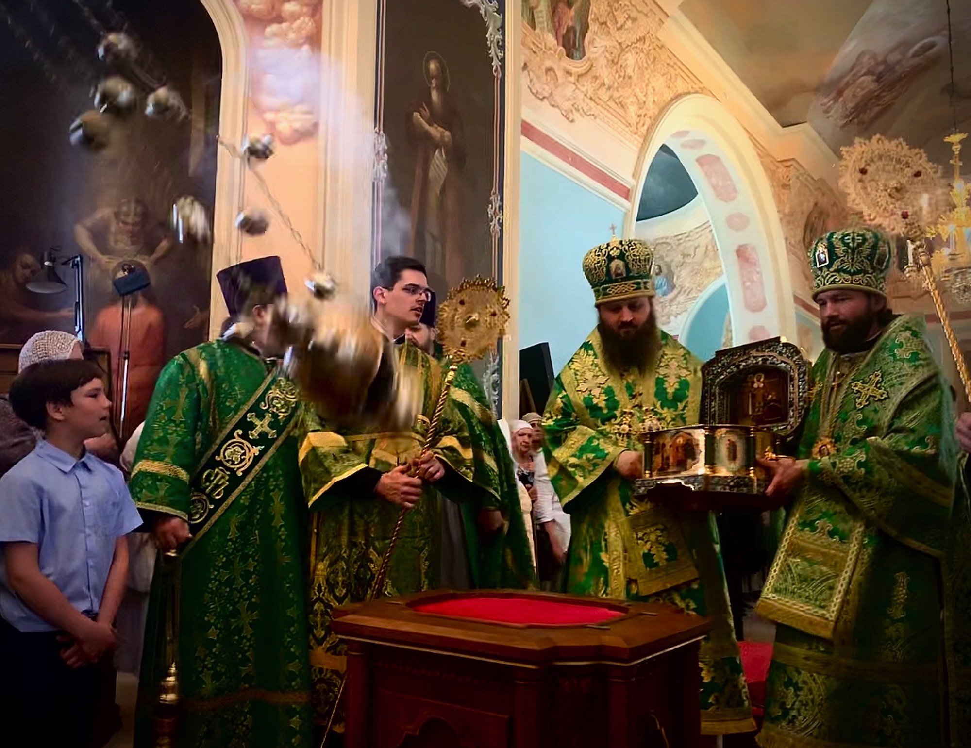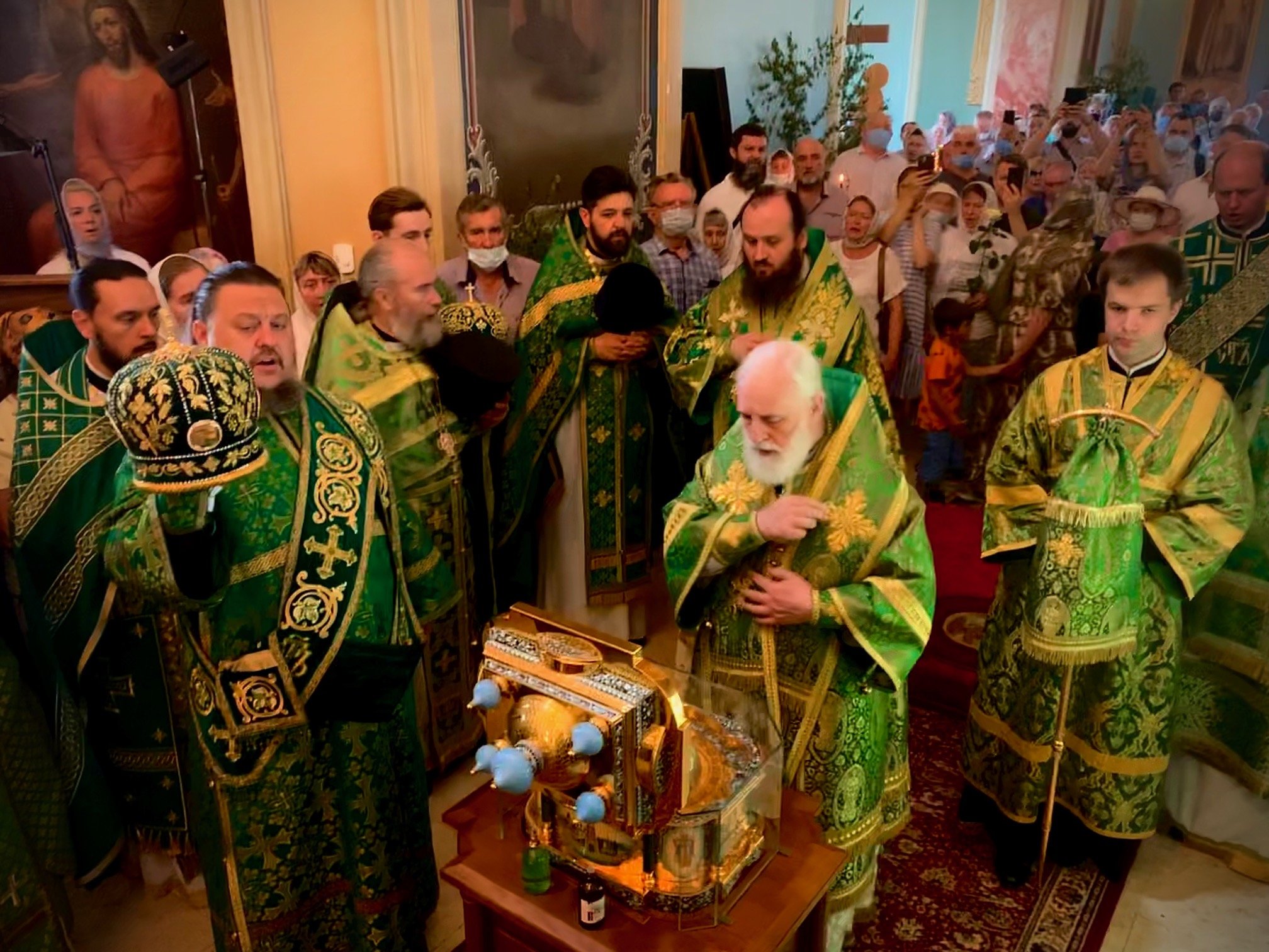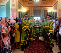 По завершении Божественной литургии перед ковчегом со святыми мощами было совершено славление и возглашены уставные многолетия.